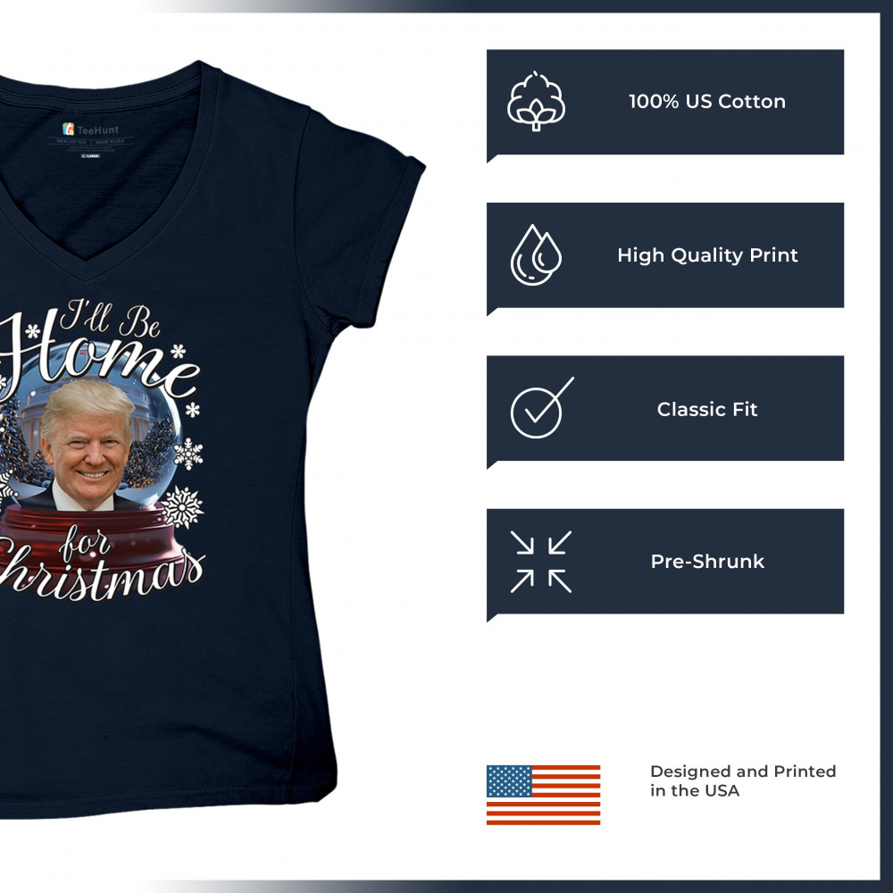Get ready for the ultimate blend of holiday cheer and American pride with this "I'll Be Home for Christmas" design featuring Donald J. Trump in a festive snow globe. Perfect for gifts, holiday parties, or cozy mornings, this standout piece celebrates the season with style. Whether paired with matching pajamas or a cozy sweatshirt, it's a perfect way to add patriotic charm to your Feliz Navidad celebrations or office gatherings.
