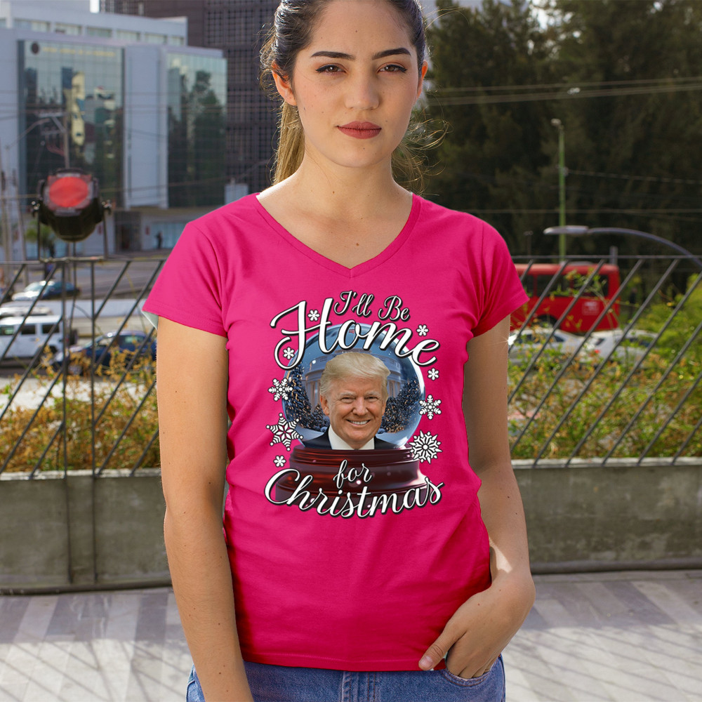 Get ready for the ultimate blend of holiday cheer and American pride with this "I'll Be Home for Christmas" design featuring Donald J. Trump in a festive snow globe. Perfect for gifts, holiday parties, or cozy mornings, this standout piece celebrates the season with style. Whether paired with matching pajamas or a cozy sweatshirt, it's a perfect way to add patriotic charm to your Feliz Navidad celebrations or office gatherings.