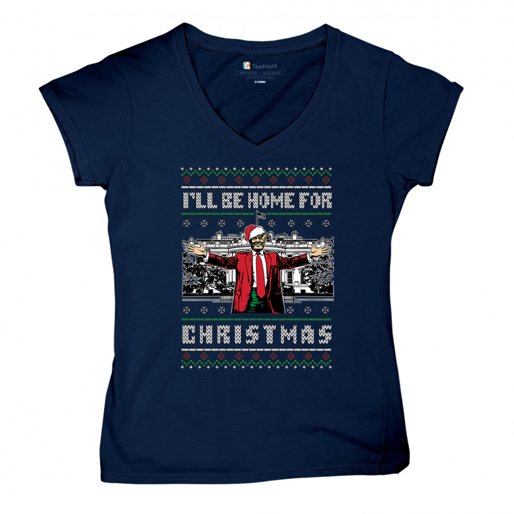 Add humor and patriotism to your holidays with this festive Trump "I'll Be Home for Christmas" design—perfect for parties and unique gifts!