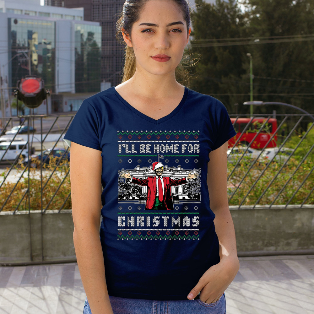 Get into the Christmas spirit with the "I'll Be Home for Christmas" design featuring Donald J. Trump in a festive holiday setting. Perfect for ugly sweater contests, holiday gatherings, and unique gifts for supporters, this humorous design adds a bold, patriotic touch to your seasonal celebrations. Whether for cozy mornings or office parties, it's a must-have for holiday cheer.