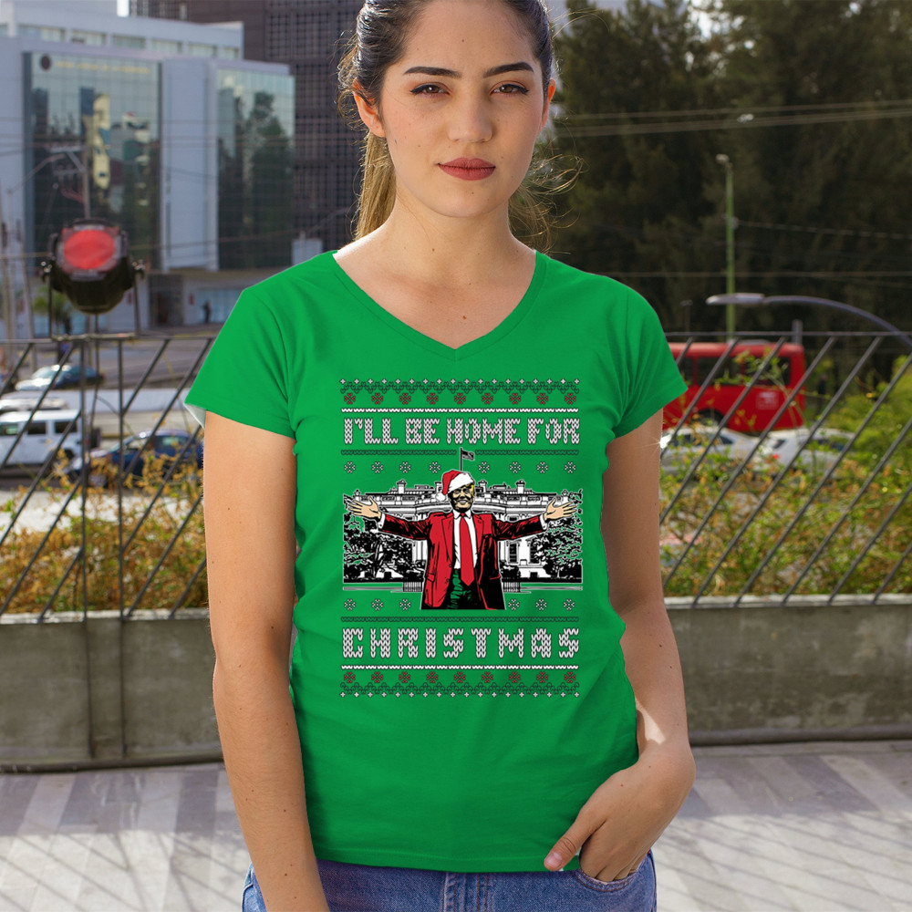 Get into the Christmas spirit with the "I'll Be Home for Christmas" design featuring Donald J. Trump in a festive holiday setting. Perfect for ugly sweater contests, holiday gatherings, and unique gifts for supporters, this humorous design adds a bold, patriotic touch to your seasonal celebrations. Whether for cozy mornings or office parties, it's a must-have for holiday cheer.