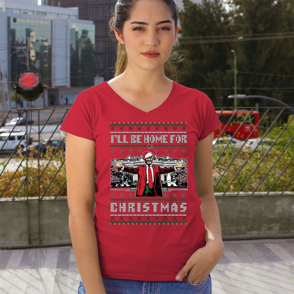 Get into the Christmas spirit with the "I'll Be Home for Christmas" design featuring Donald J. Trump in a festive holiday setting. Perfect for ugly sweater contests, holiday gatherings, and unique gifts for supporters, this humorous design adds a bold, patriotic touch to your seasonal celebrations. Whether for cozy mornings or office parties, it's a must-have for holiday cheer.