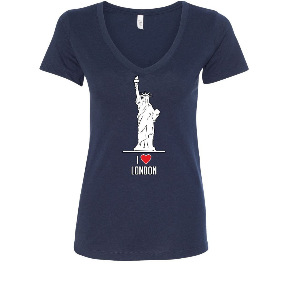 I HEART LONDON i love london women's v-neck t-shirt funny new york statue of liberty tourist navy blue