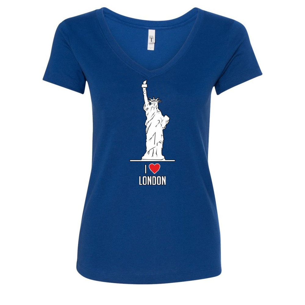 I HEART LONDON i love london women's v-neck t-shirt funny new york statue of liberty tourist royal blue