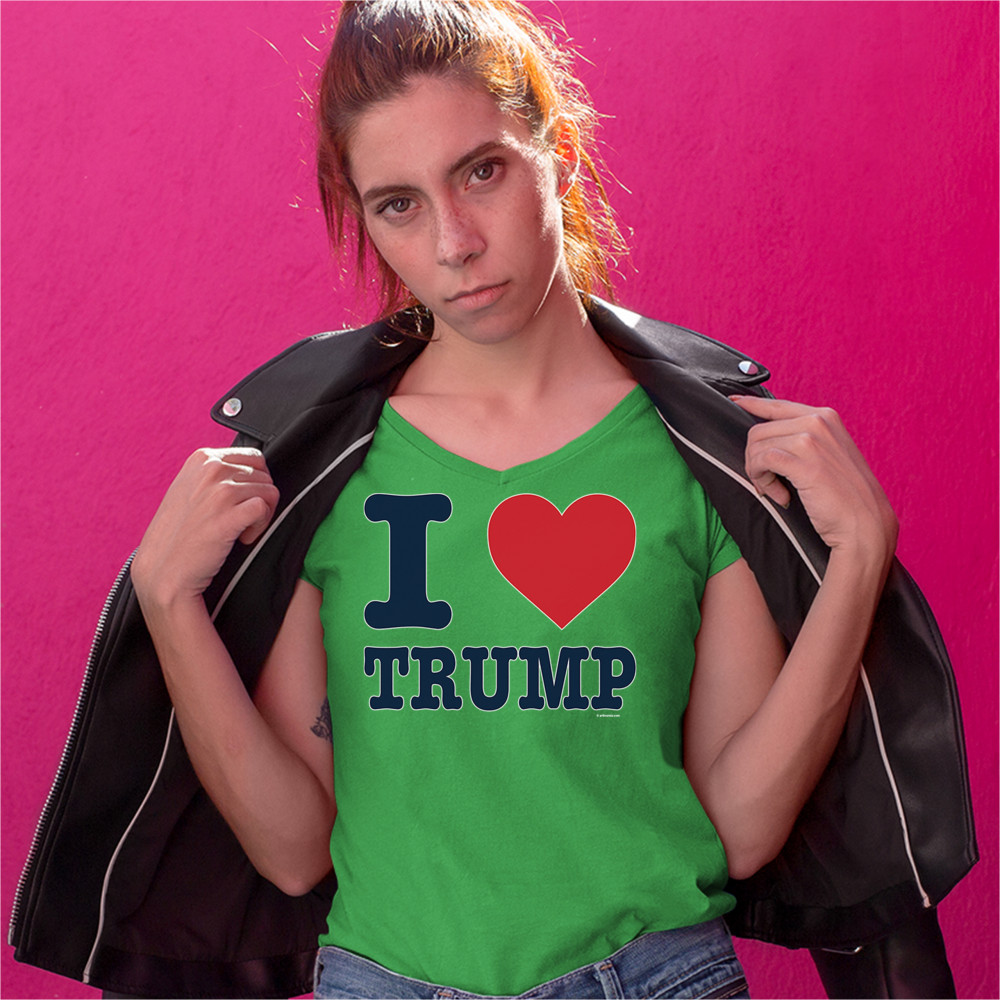 I LOVE TRUMP women's v-neck t-shirt keep america great donald trump 2020 tee green
