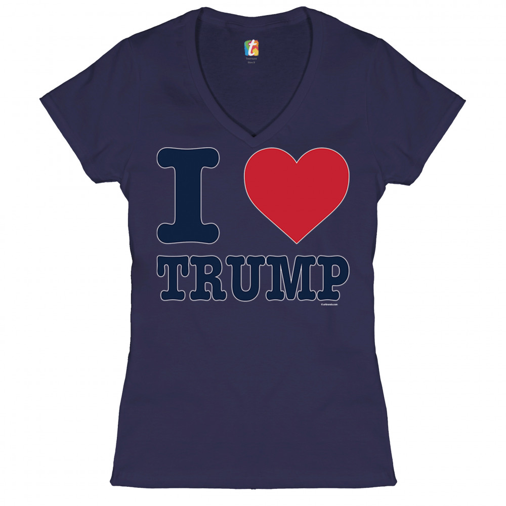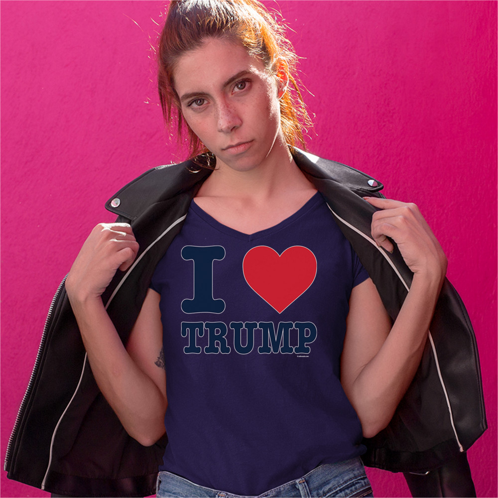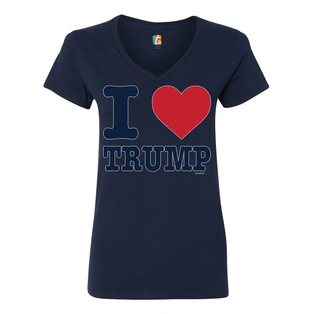 I LOVE TRUMP women's v-neck t-shirt keep america great donald trump 2020 tee navy blue