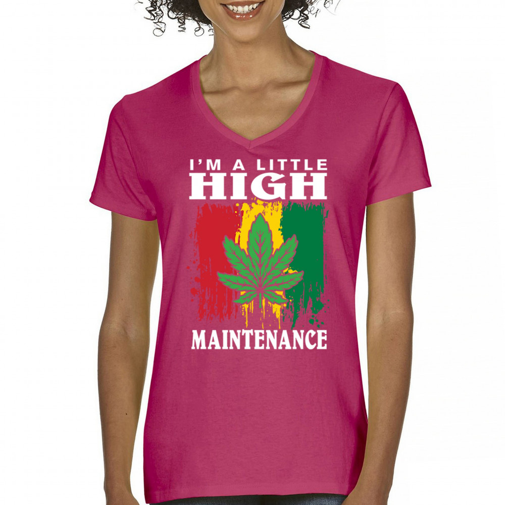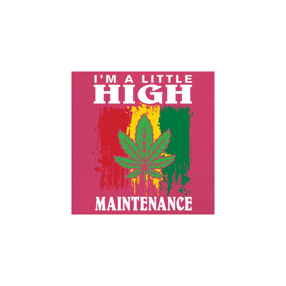 "I'm a Little High Maintenance" design with a bold cannabis leaf and vibrant background. Perfect for fans of Mary Jane, humor, and relaxed, trippy style.