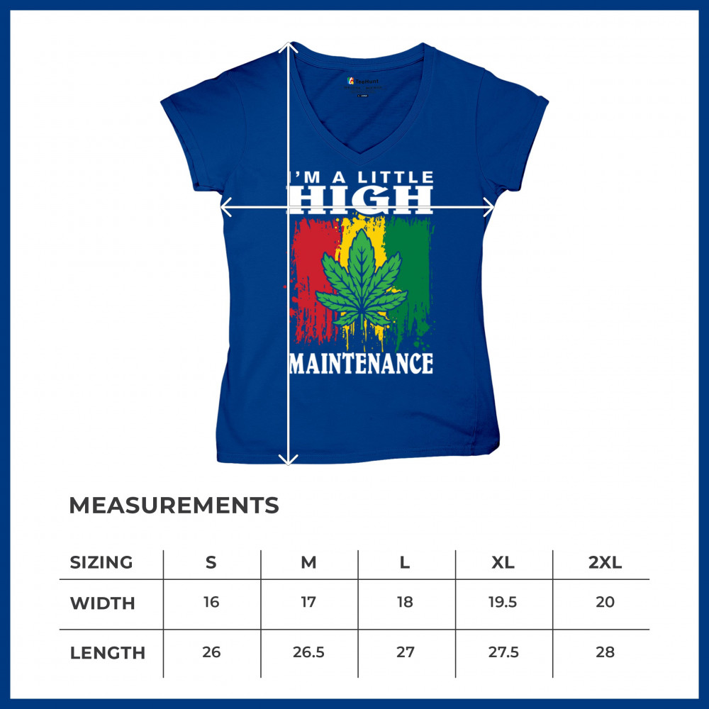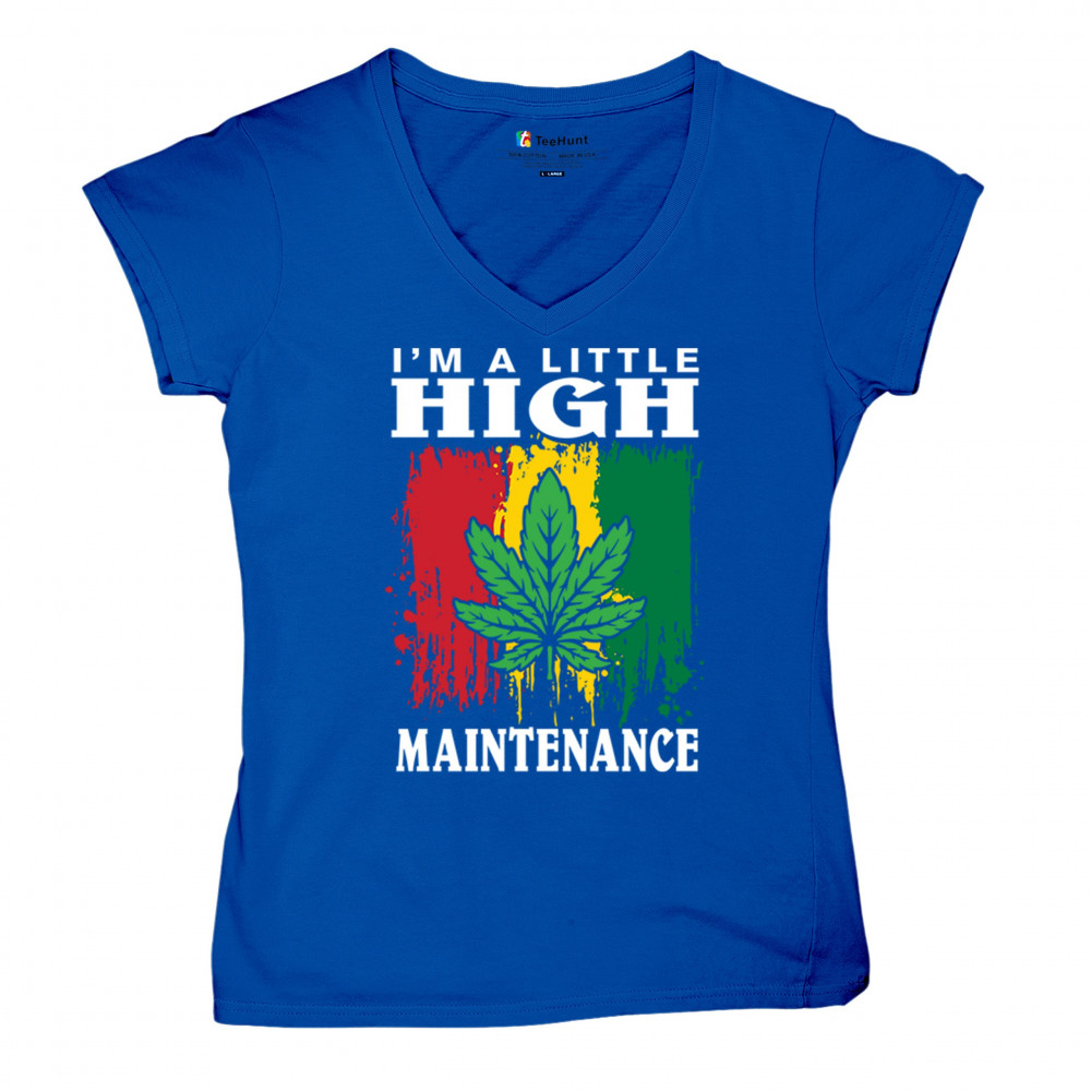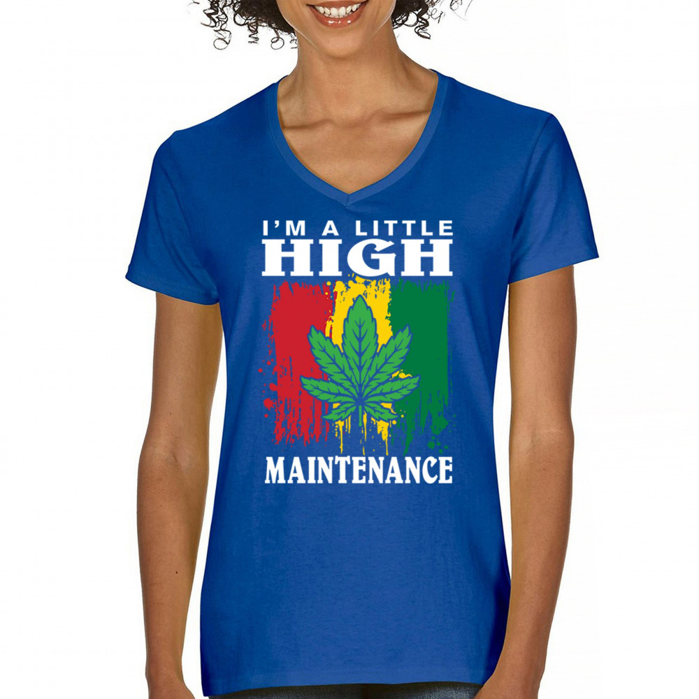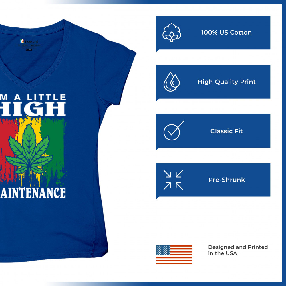 "I'm a Little High Maintenance" design with a bold cannabis leaf and vibrant background. Perfect for fans of Mary Jane, humor, and relaxed, trippy style.