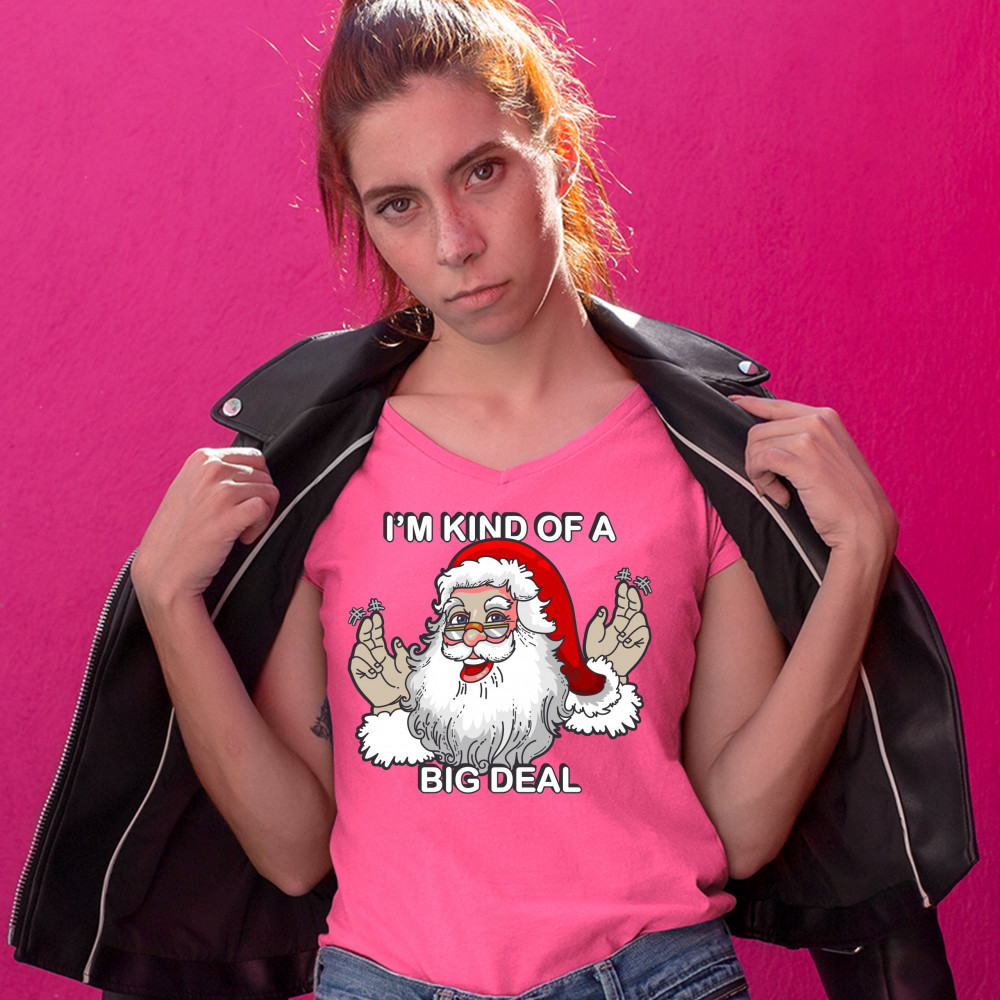 I'M KIND OF A BIG DEAL women's v-neck t-shirt santa claus merry christmas tee pink
