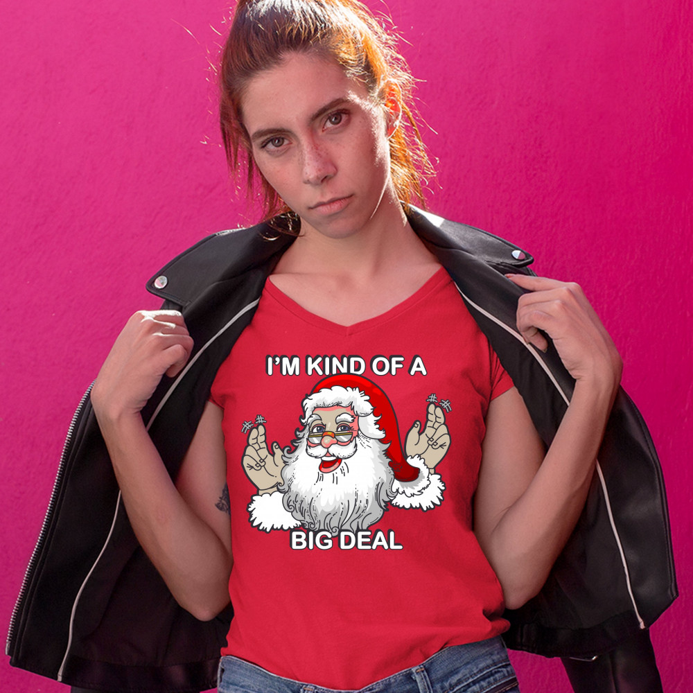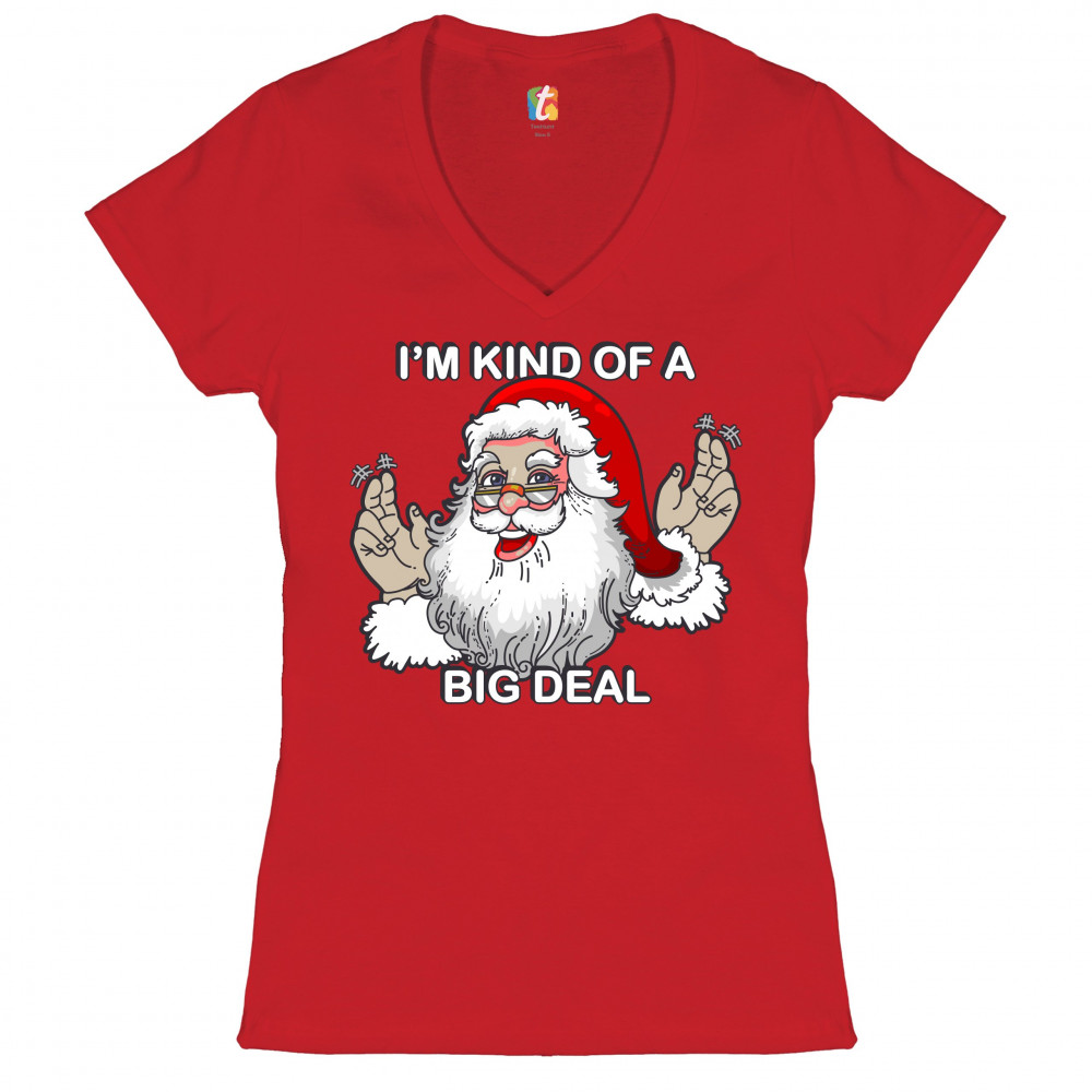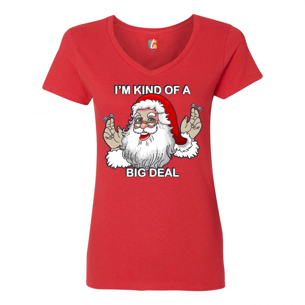 I'M KIND OF A BIG DEAL women's v-neck t-shirt santa claus merry christmas tee red