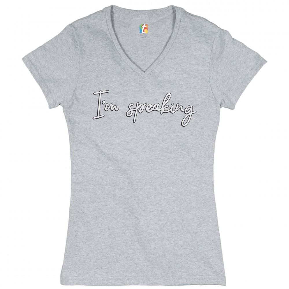 I'M SPEAKING women's v-neck t-shirt biden harris vice presidential debate tee gray