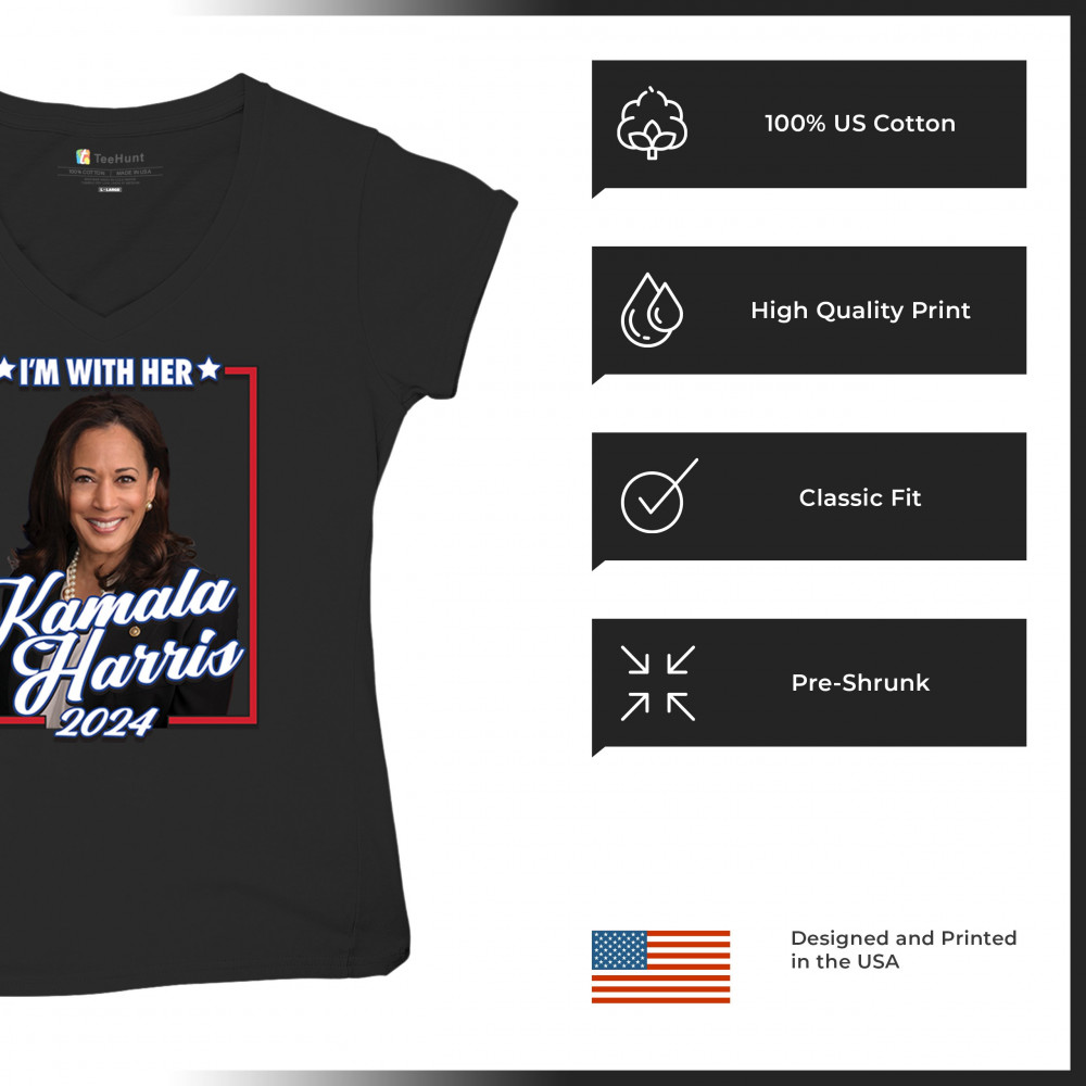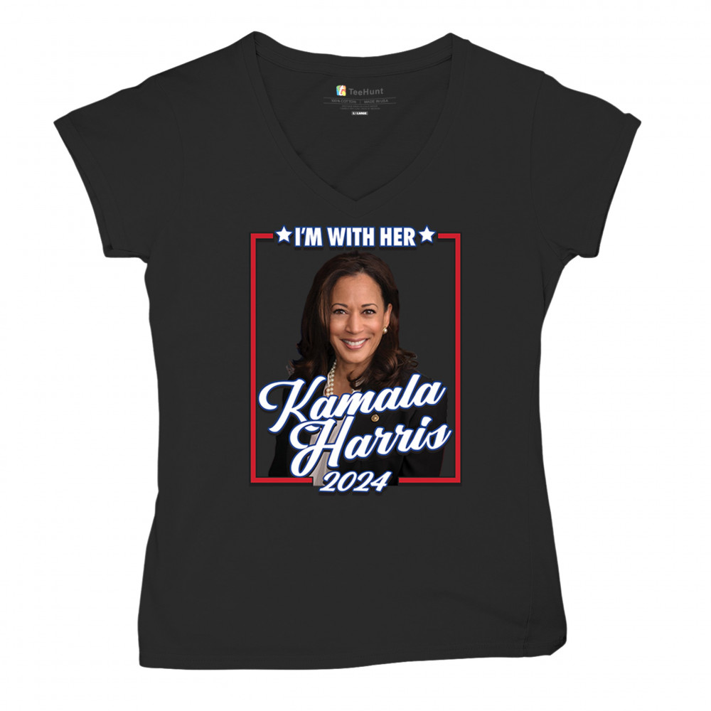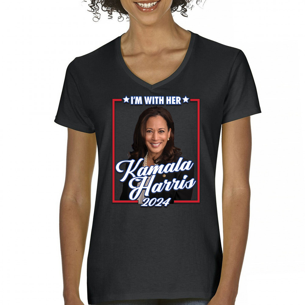 I'M WITH HER KAMALA HARRIS 2024 women's v-neck t-shirt 47 i'm speaking usa tee black