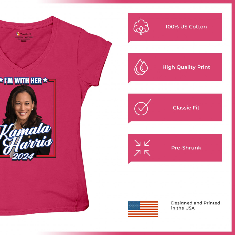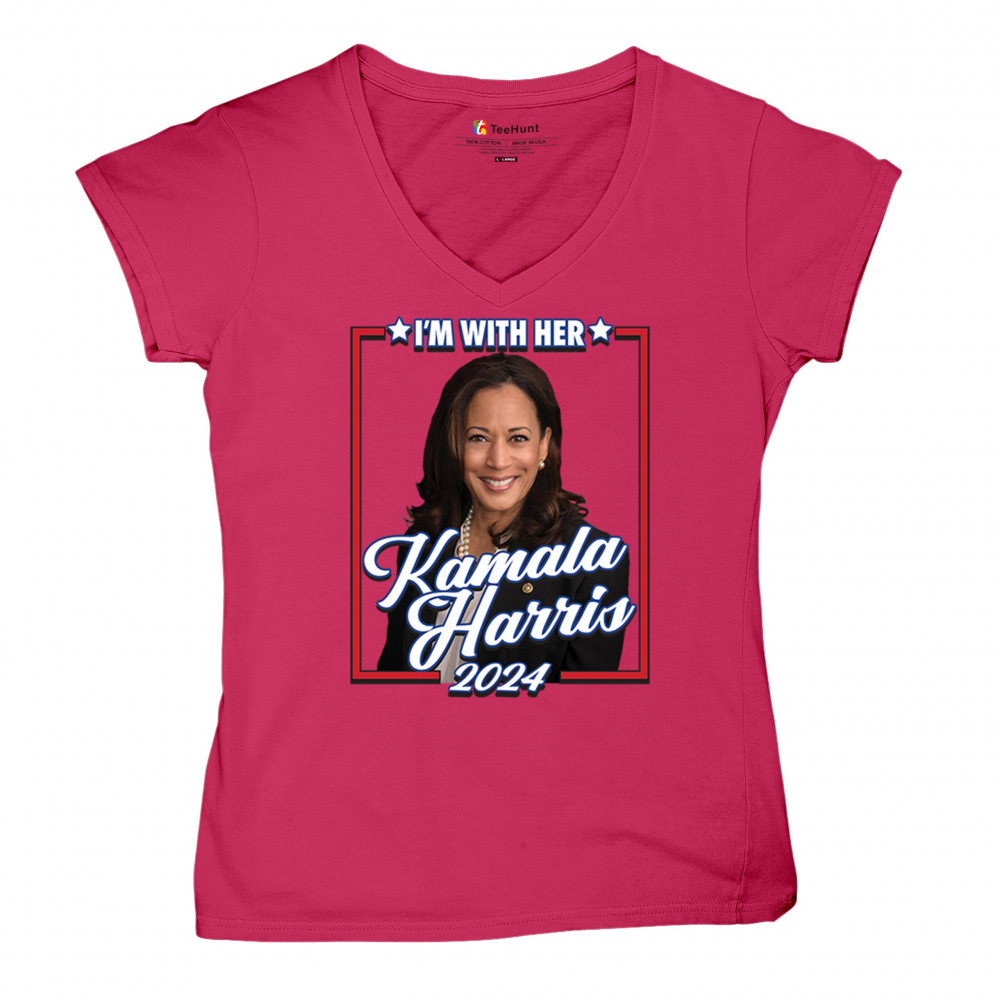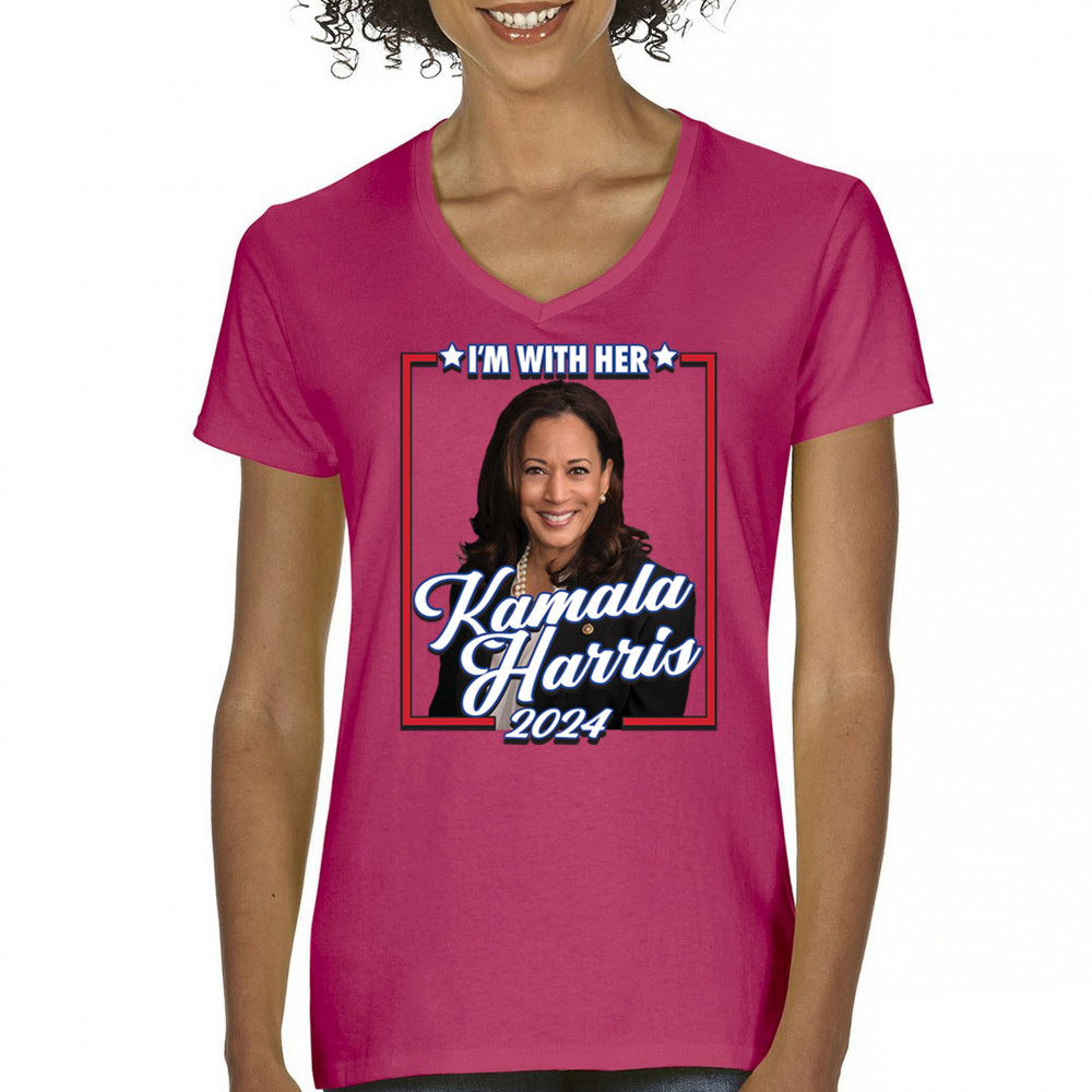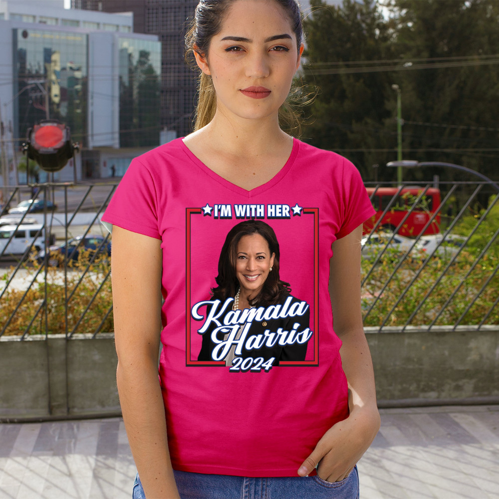 Stand with Kamala Harris in her 2024 presidential campaign with this vibrant design. Highlighting her commitment to progressive causes, this design is perfect for supporters of LGBTQ+ rights, women's rights, and social justice. Featuring the iconic "I'm With Her" slogan, it's a bold statement for anyone who believes in a brighter future. Wear it to rallies, events, or any day to show your support for Kamala Harris and her vision for America. A great addition to any supporter’s collection!