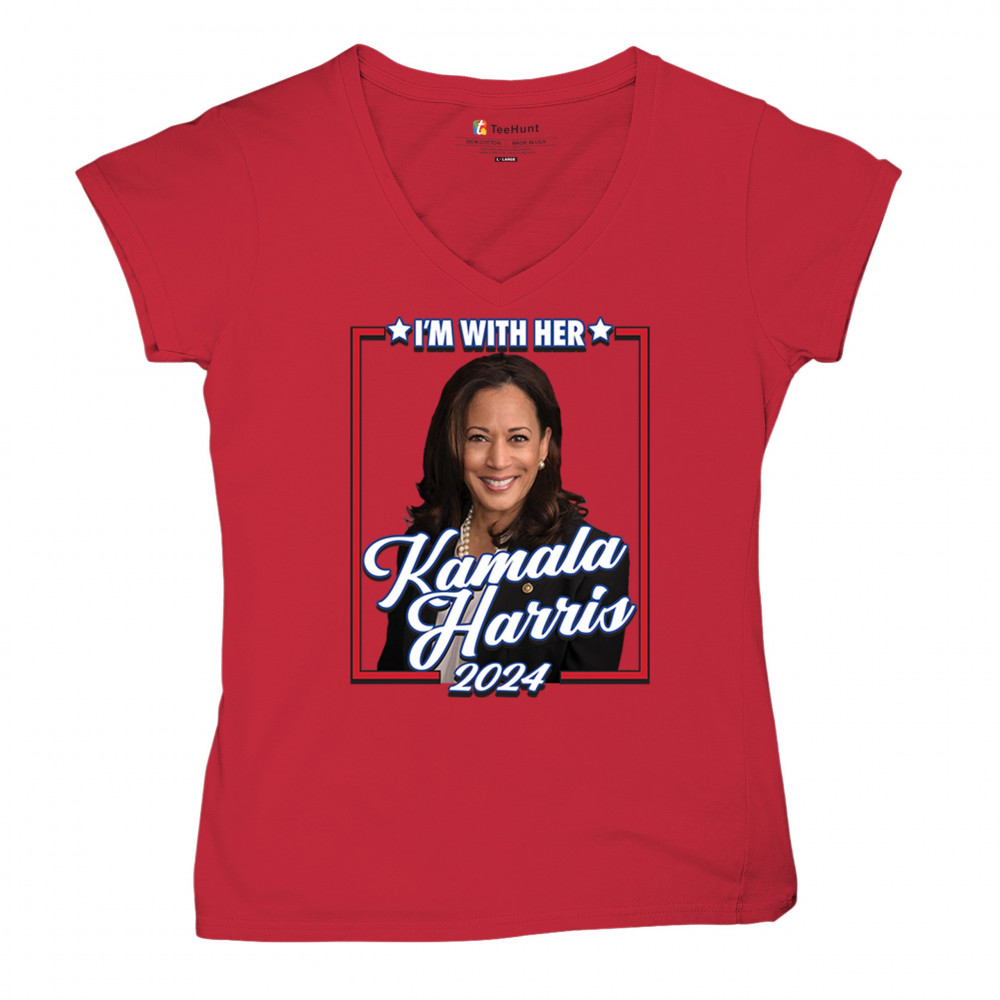 Stand with Kamala Harris in her 2024 presidential campaign with this vibrant design. Highlighting her commitment to progressive causes, this design is perfect for supporters of LGBTQ+ rights, women's rights, and social justice. Featuring the iconic "I'm With Her" slogan, it's a bold statement for anyone who believes in a brighter future. Wear it to rallies, events, or any day to show your support for Kamala Harris and her vision for America. A great addition to any supporter’s collection!