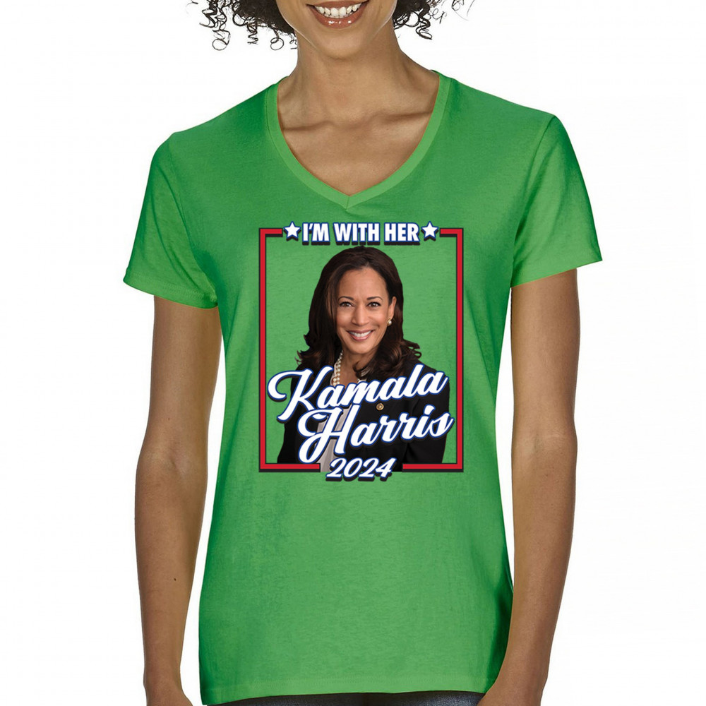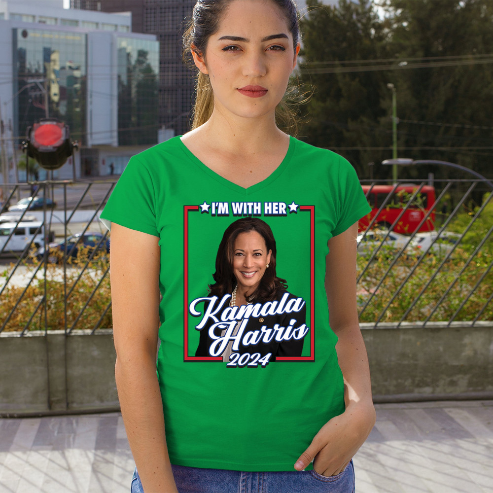 Stand with Kamala Harris in her 2024 presidential campaign with this vibrant design. Highlighting her commitment to progressive causes, this design is perfect for supporters of LGBTQ+ rights, women's rights, and social justice. Featuring the iconic "I'm With Her" slogan, it's a bold statement for anyone who believes in a brighter future. Wear it to rallies, events, or any day to show your support for Kamala Harris and her vision for America. A great addition to any supporter’s collection!