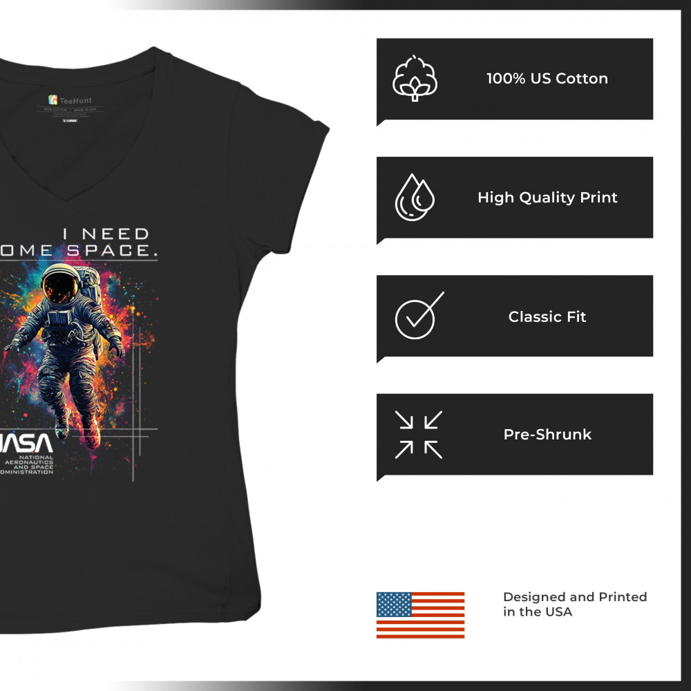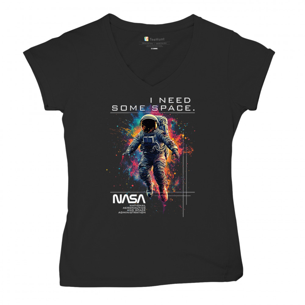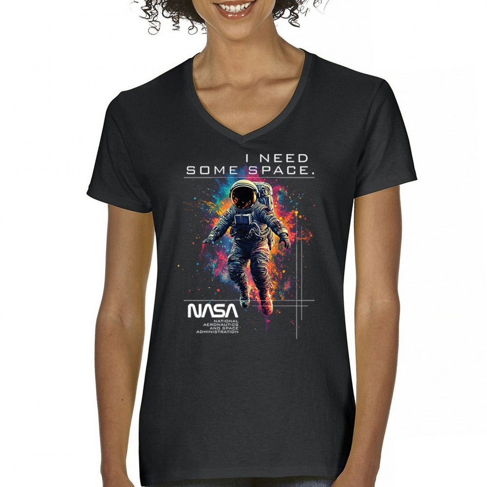 I NEED SOME SPACE NASA women's v-neck t-shirt universe astronaut paint splatter black