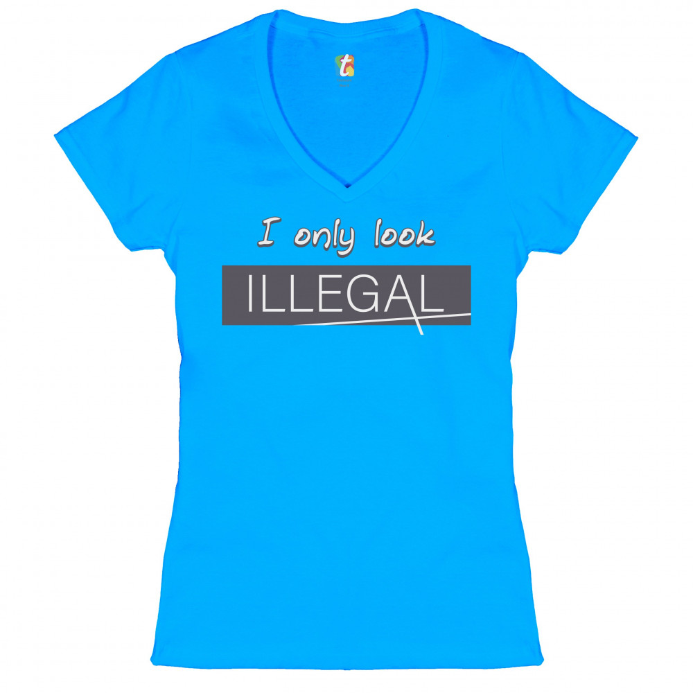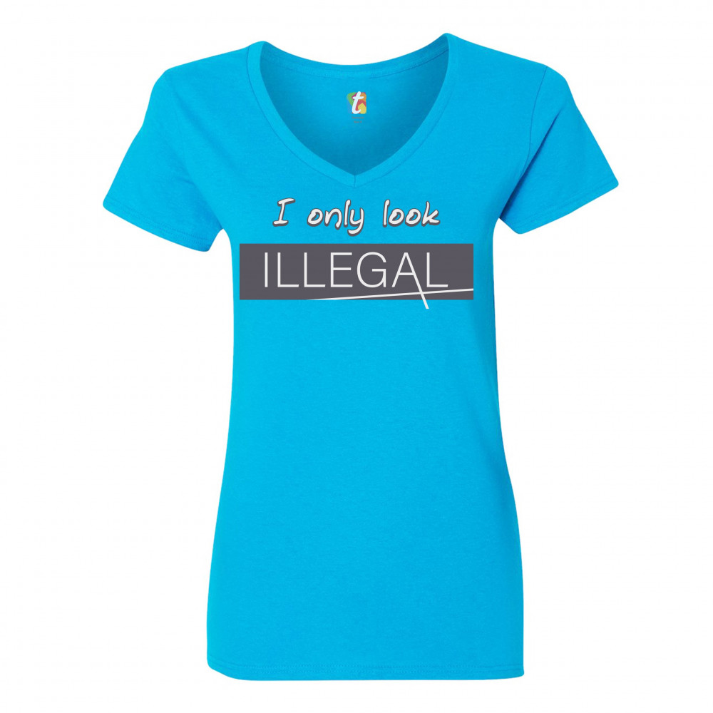 I ONLY LOOK ILLEGAL women's v-neck t-shirt stop racism pro immigration tee turquoise
