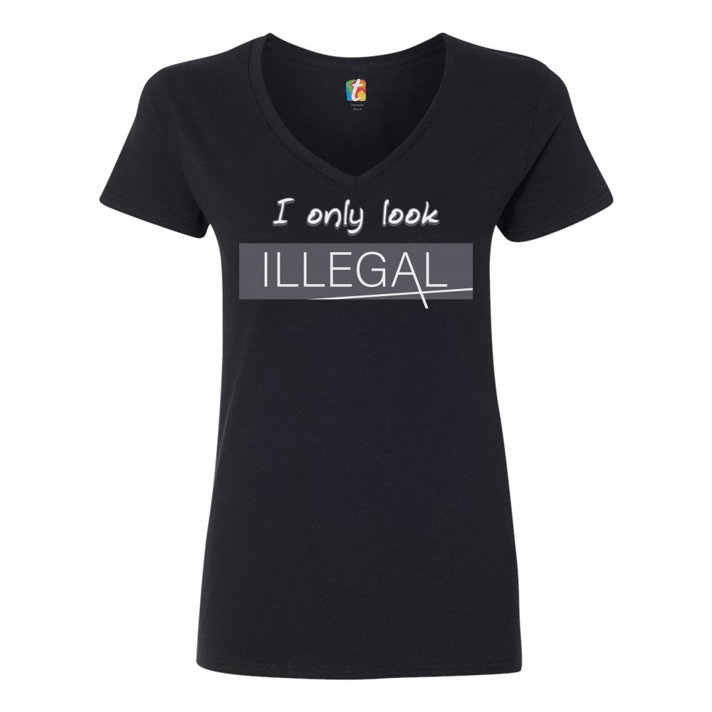 I ONLY LOOK ILLEGAL women's v-neck t-shirt stop racism pro immigration tee black