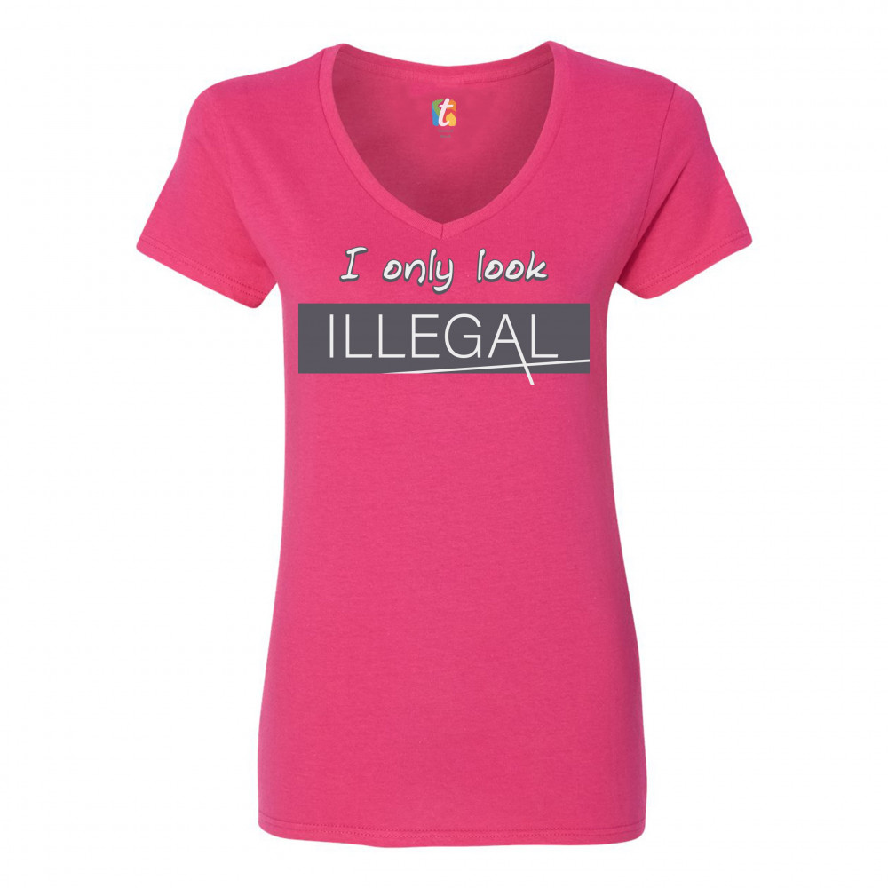 I ONLY LOOK ILLEGAL women's v-neck t-shirt stop racism pro immigration tee pink