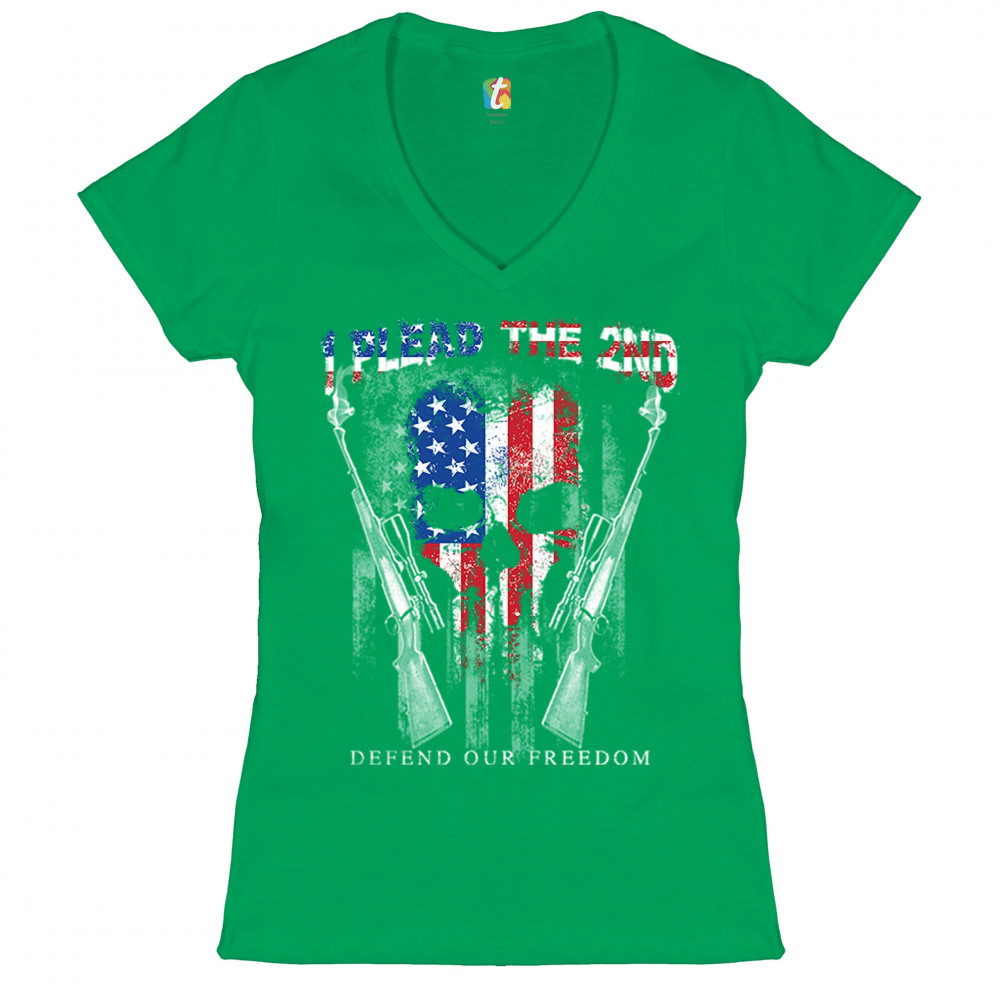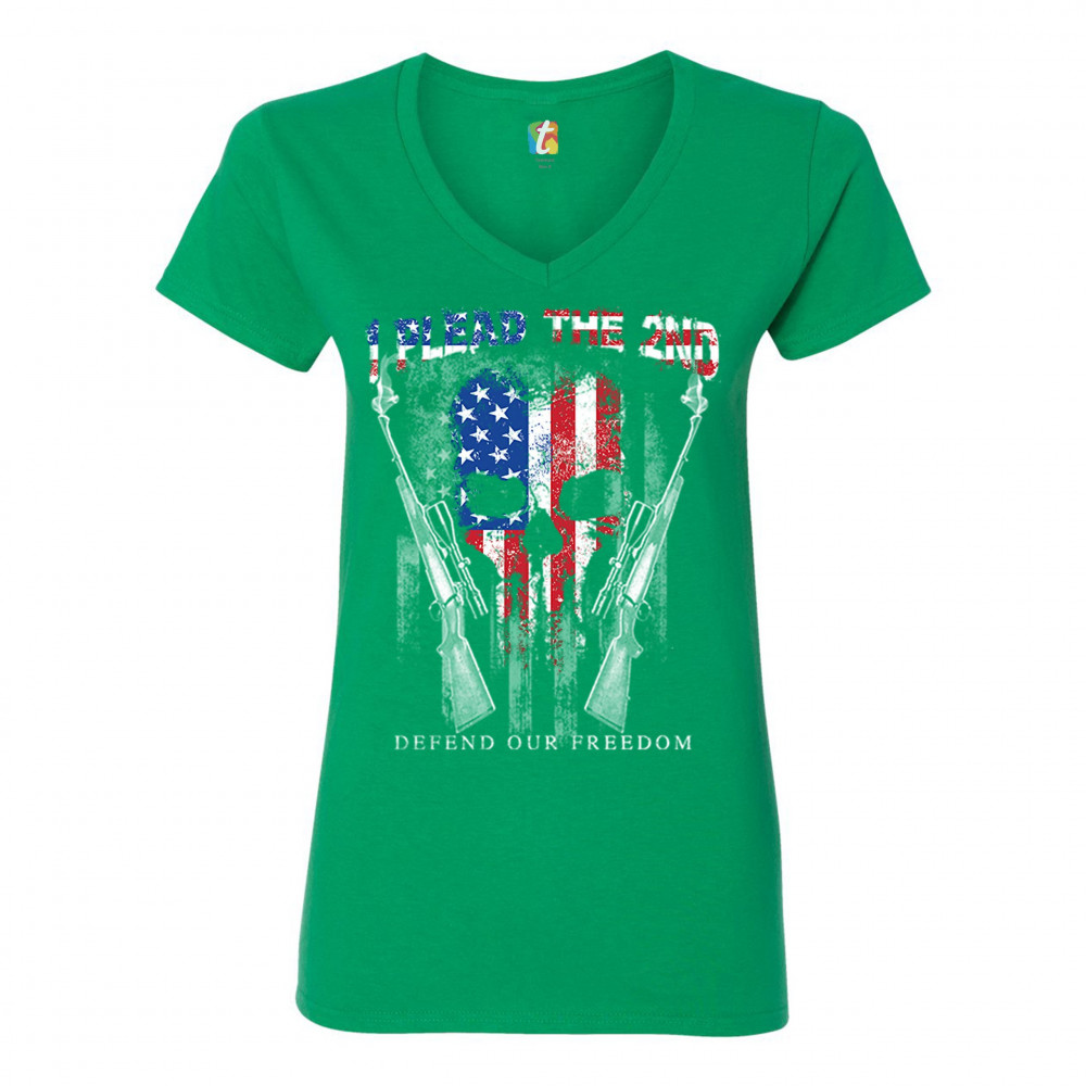 I PLEAD THE 2ND DEFEND OUR FREEDOM women's v-neck t-shirt american flag tee green