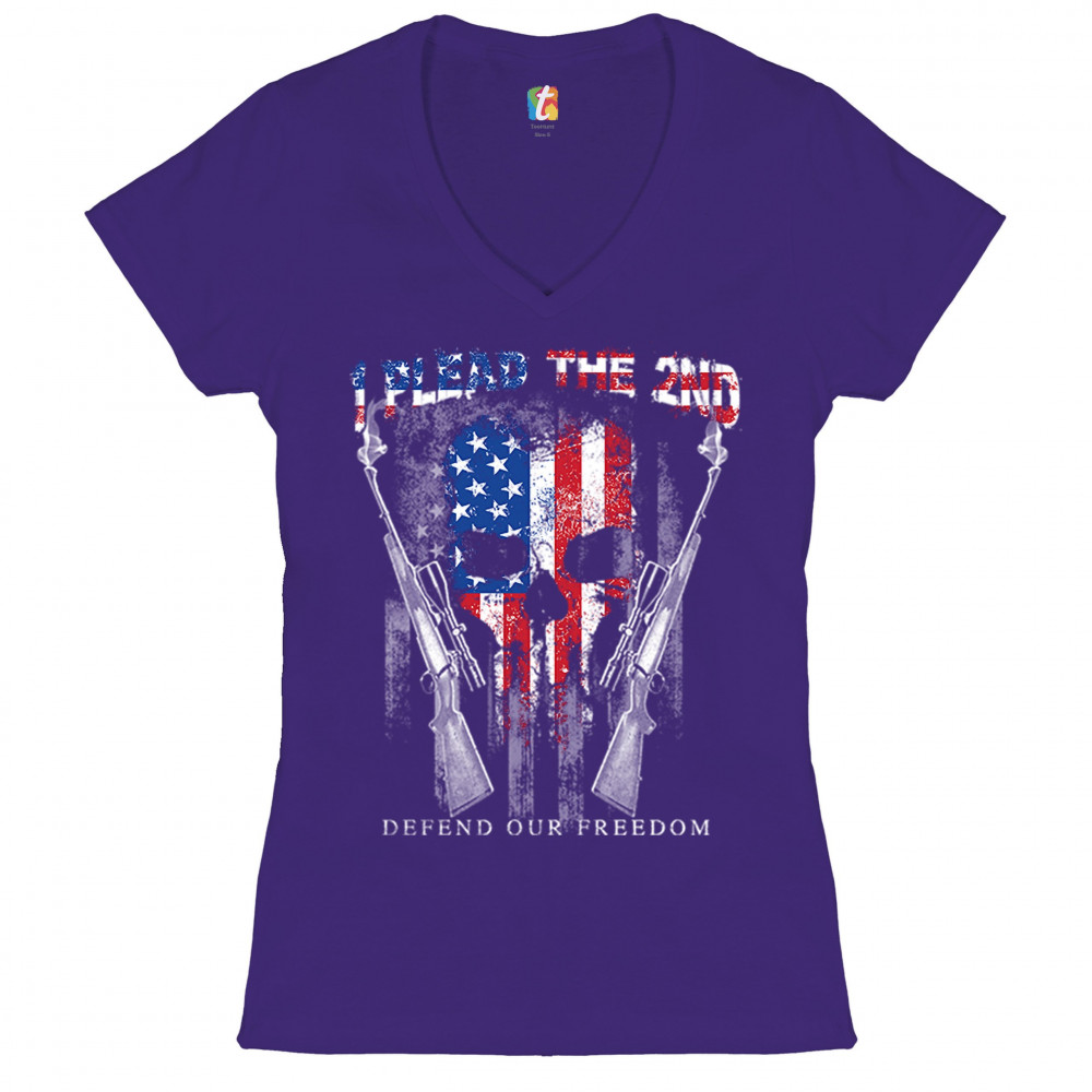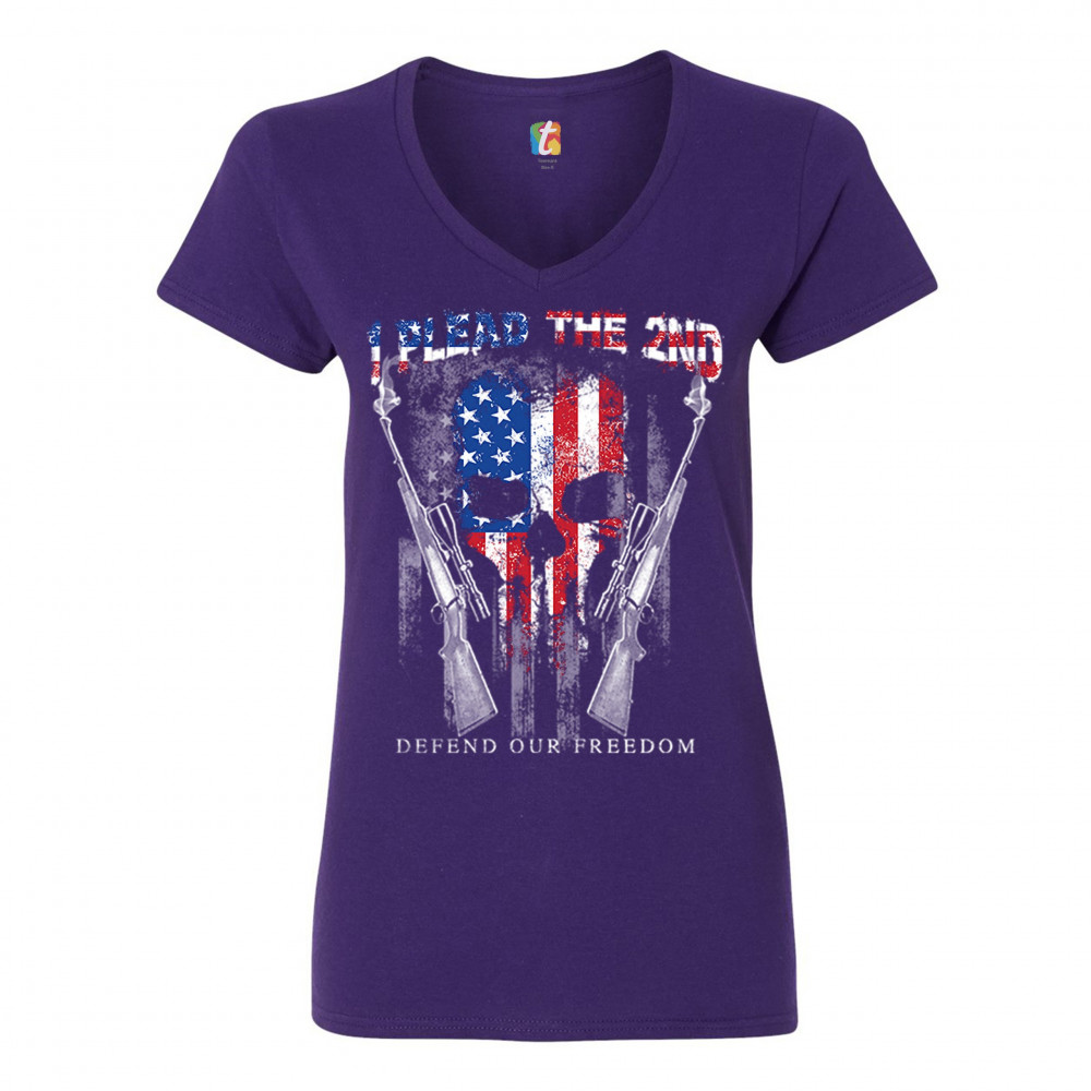 I PLEAD THE 2ND DEFEND OUR FREEDOM women's v-neck t-shirt american flag tee purple