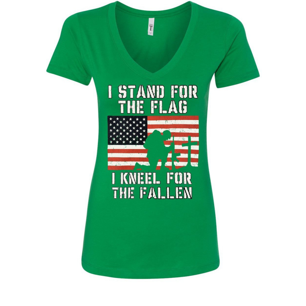 I STAND FOR THE FLAG I KNEEL FOR THE FALLEN women's v-neck t-shirt patriotic green