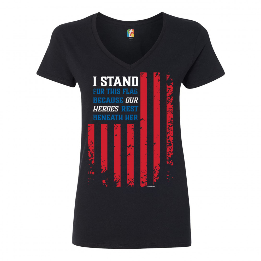 I STAND FOR THIS FLAG women's v-neck t-shirt veteran's day american flag tee black