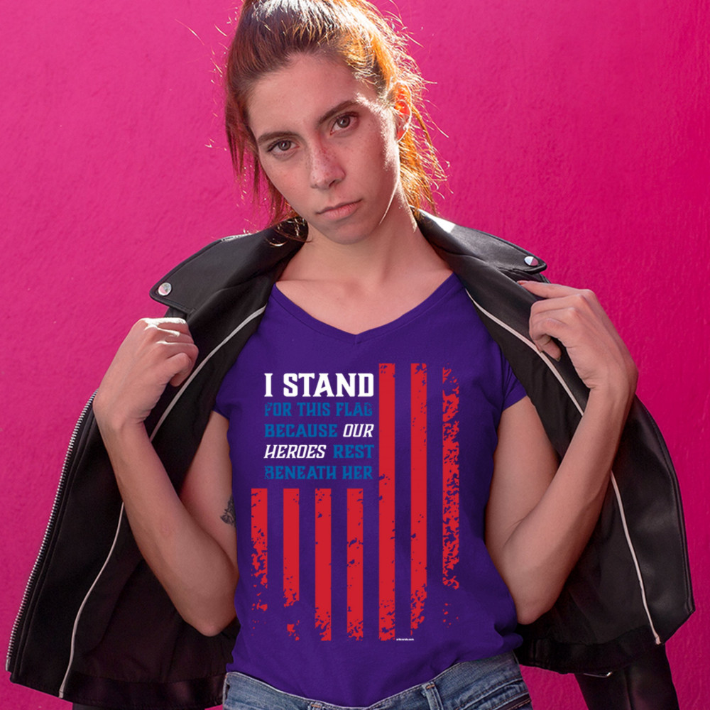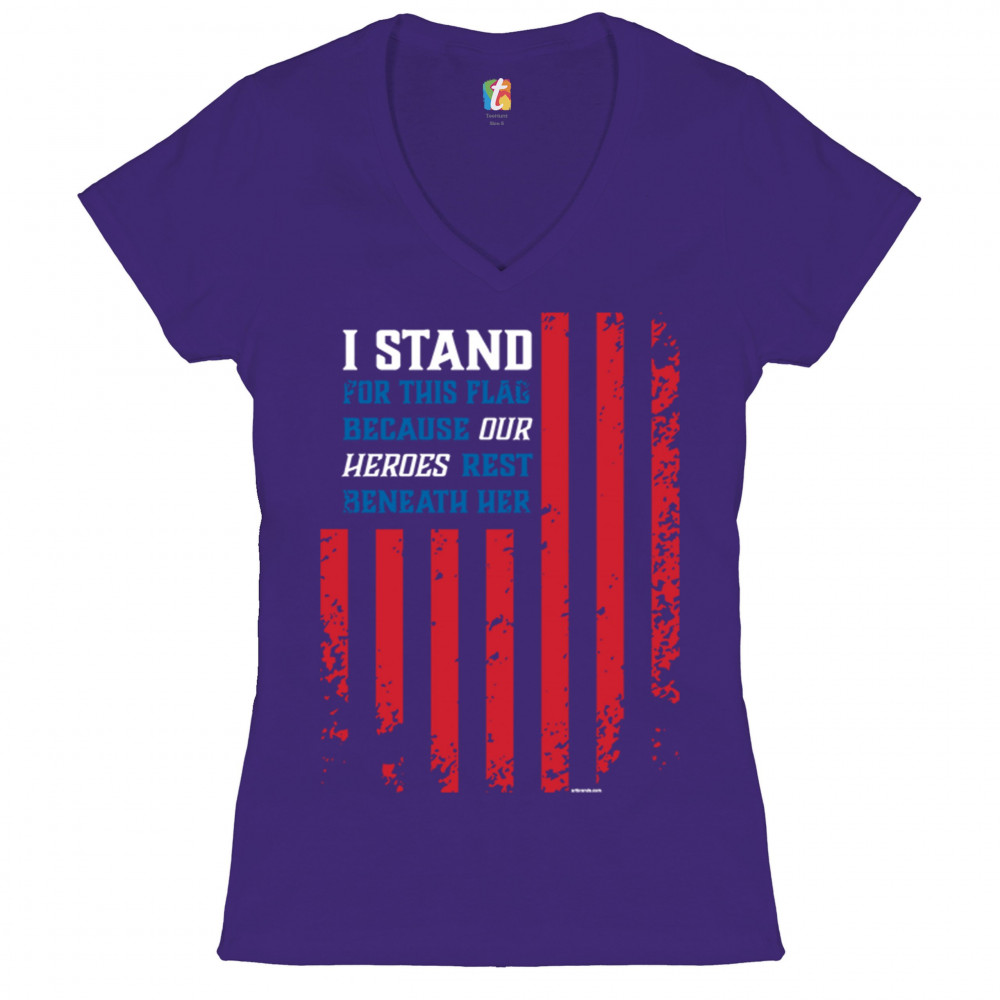I STAND FOR THIS FLAG women's v-neck t-shirt veteran's day american flag tee purple