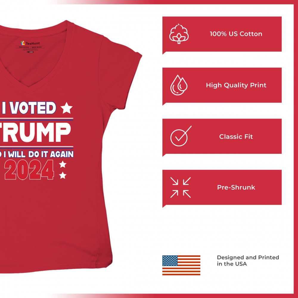 Stand tall as a dedicated Trump supporter with our "I Voted Trump and Will Do It Again 2024" design, showcasing your unwavering commitment to the America First agenda. Let the world know that you stand ready to cast your vote for President Trump once more
