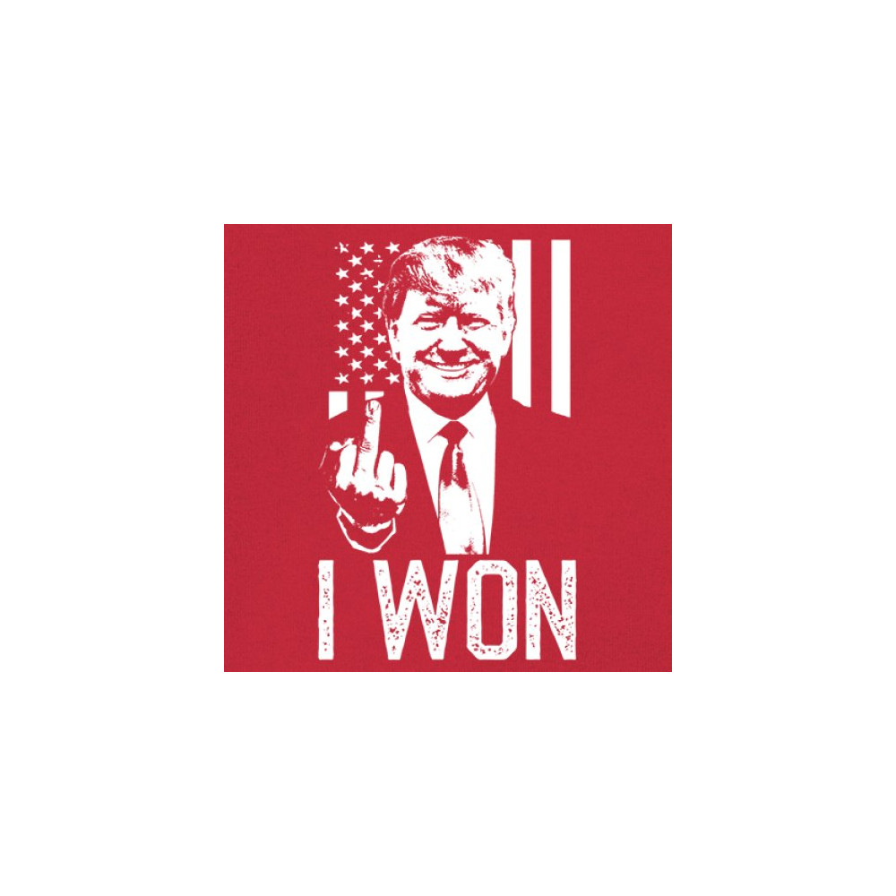 Show your patriotic pride with this bold "I Won" design featuring Donald J. Trump and the American flag. A statement for Trump supporters and conservative believers, it reflects the fight for freedom, the people's mandate, and Republican values. Whether at rallies, events, or as a gift, this design speaks to the heart of America First and the enduring Red Wave movement.