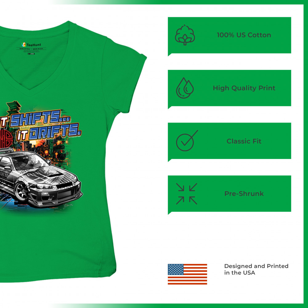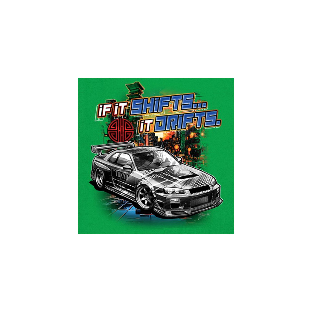 "If It Shifts, It Drifts" design. Perfect for car enthusiasts, featuring a detailed car and vibrant cityscape. Comfortable, durable, and stylish.