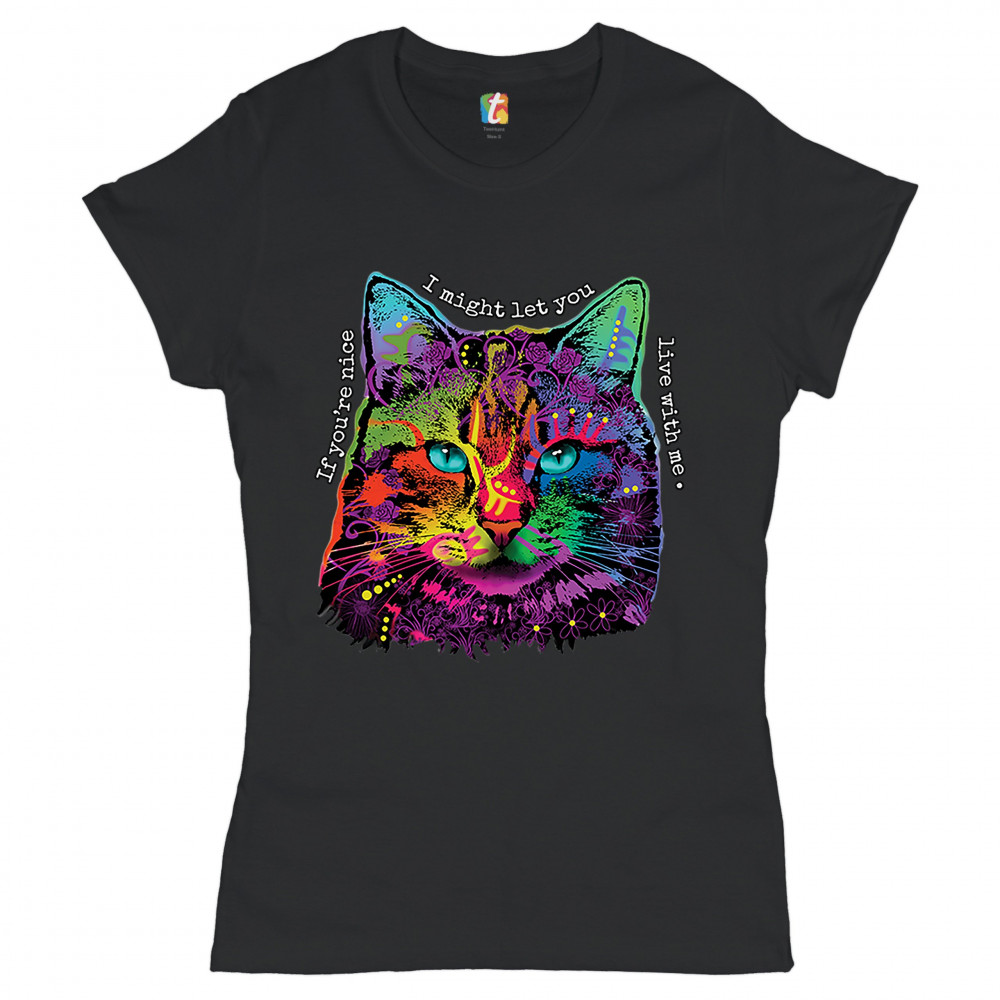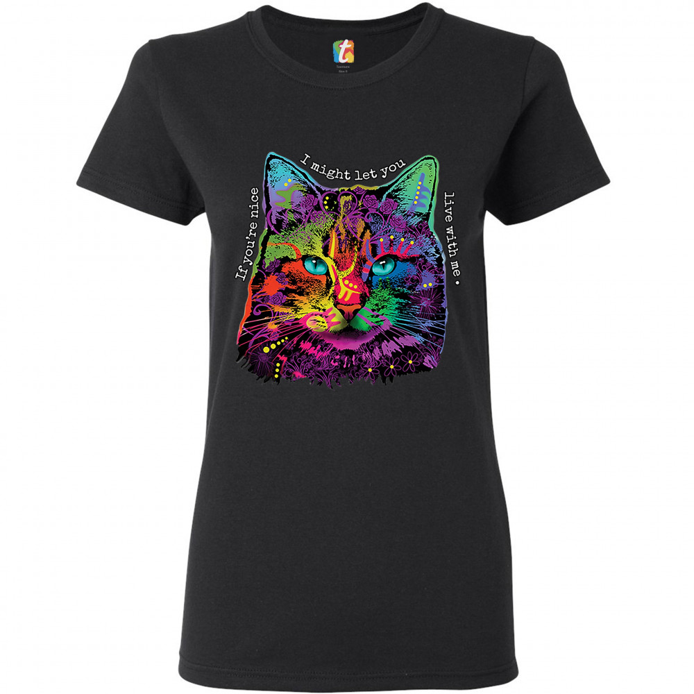 IF YOU'RE NICE I MIGHT LET YOU LIVE WITH ME t-shirt andy maxx cat women's tee black