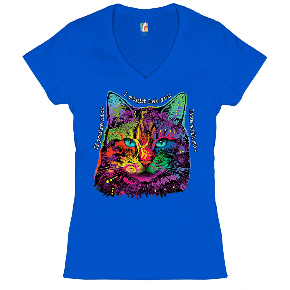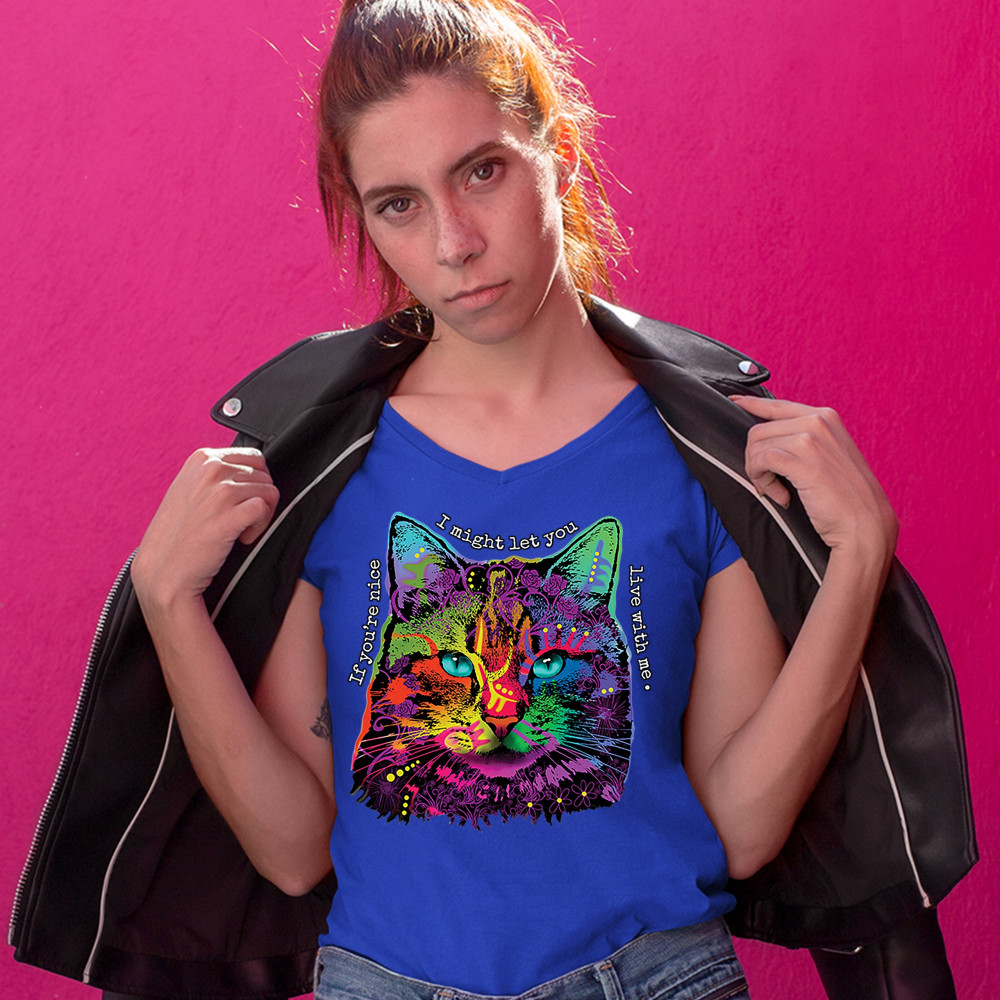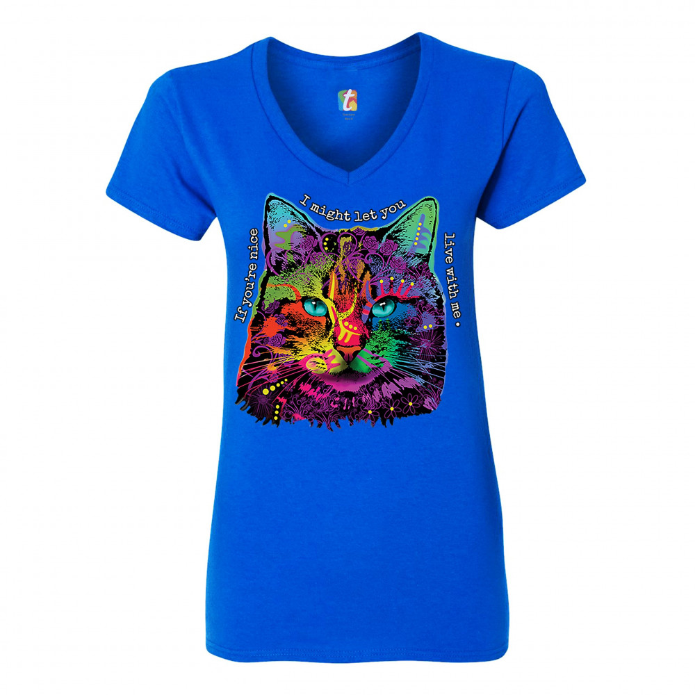 IF YOU'RE NICE I MIGHT LET YOU LIVE WITH ME women's v-neck t-shirt cat tee royal blue