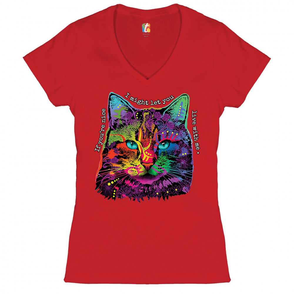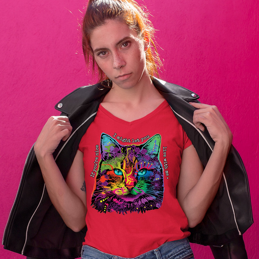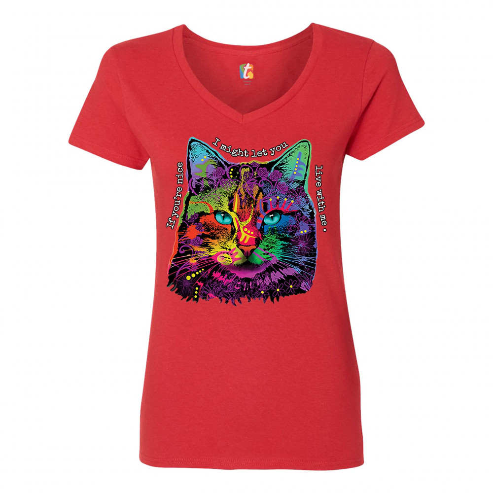IF YOU'RE NICE I MIGHT LET YOU LIVE WITH ME women's v-neck t-shirt cat tee red