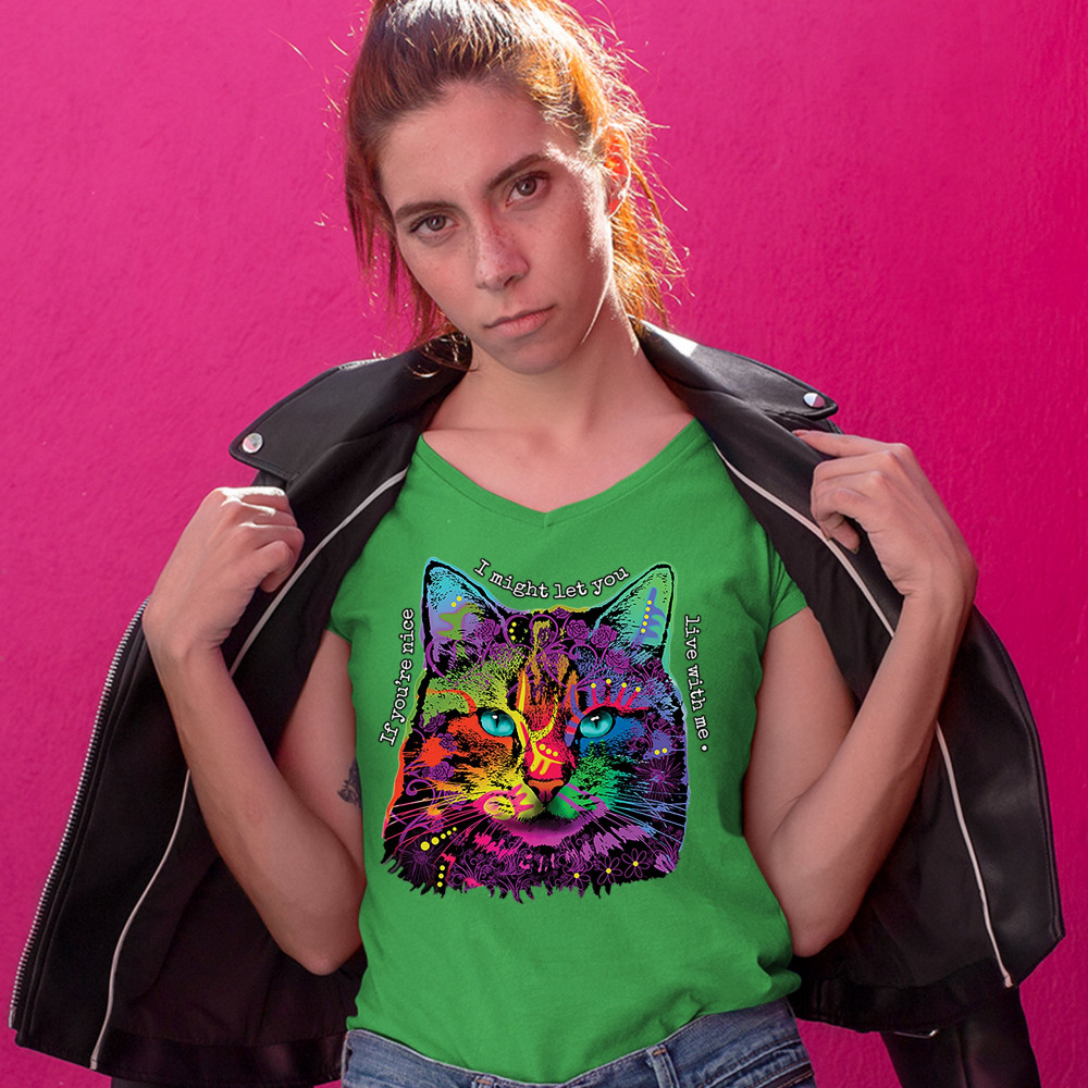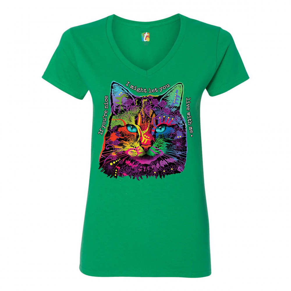 IF YOU'RE NICE I MIGHT LET YOU LIVE WITH ME women's v-neck t-shirt cat tee green