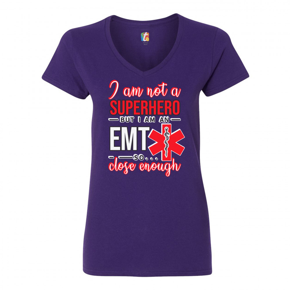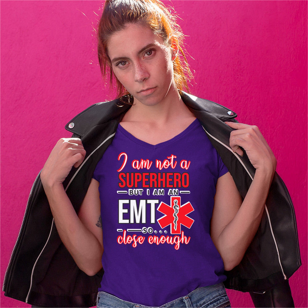 A funny print saying "I'm Not a Superhero But I'm an EMT so Close Enough". All words are written in different fonts. The print also includes the Star of Life, the worldwide recognized symbol of emergency medical services, with the Rod of Asclepius inside of it. A great choice as a gift for a first responder.