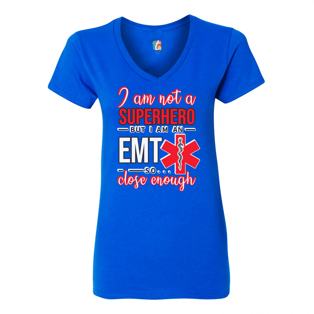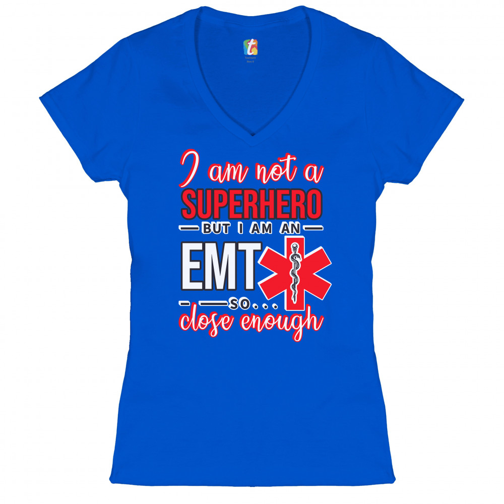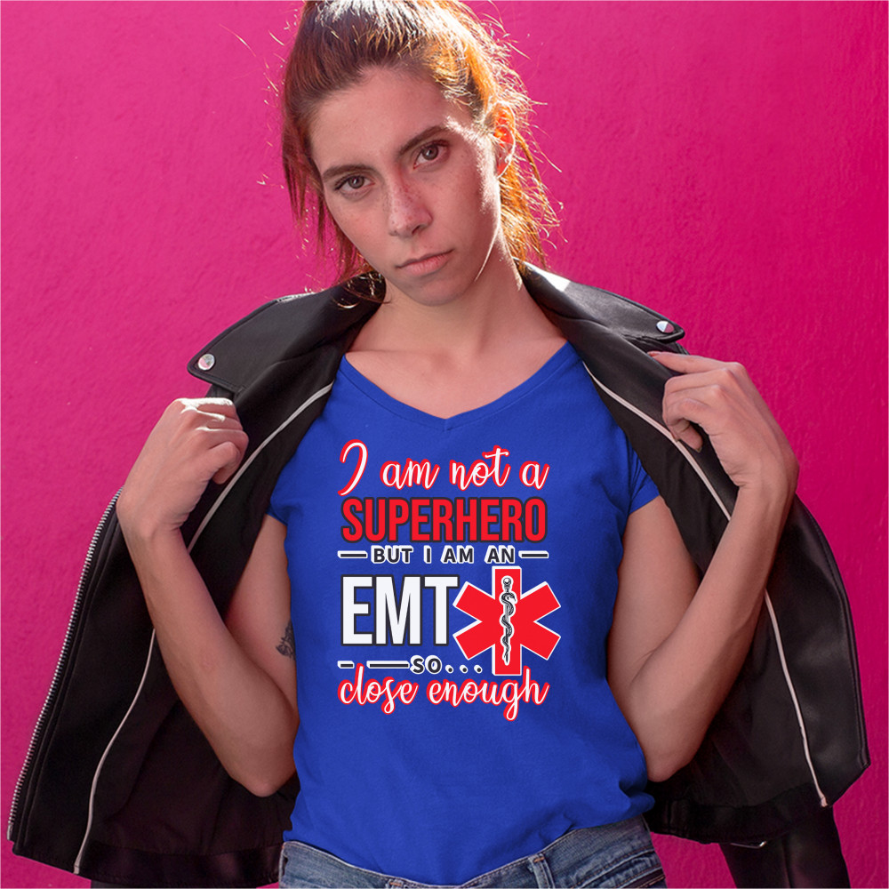 A funny print saying "I'm Not a Superhero But I'm an EMT so Close Enough". All words are written in different fonts. The print also includes the Star of Life, the worldwide recognized symbol of emergency medical services, with the Rod of Asclepius inside of it. A great choice as a gift for a first responder.