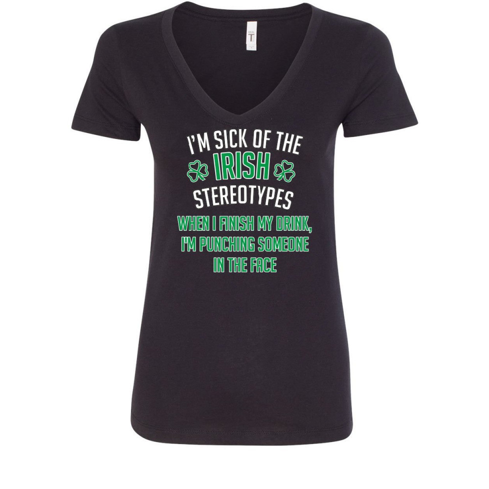 SICK OF THE IRISH STEREOTYPES i'm sick of irish stereotypes women's v-neck t-shirt st. patrick's day beer pub black