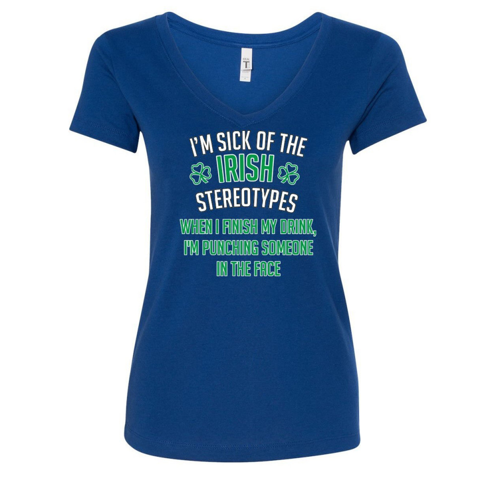 SICK OF THE IRISH STEREOTYPES i'm sick of irish stereotypes women's v-neck t-shirt st. patrick's day beer pub royal blue