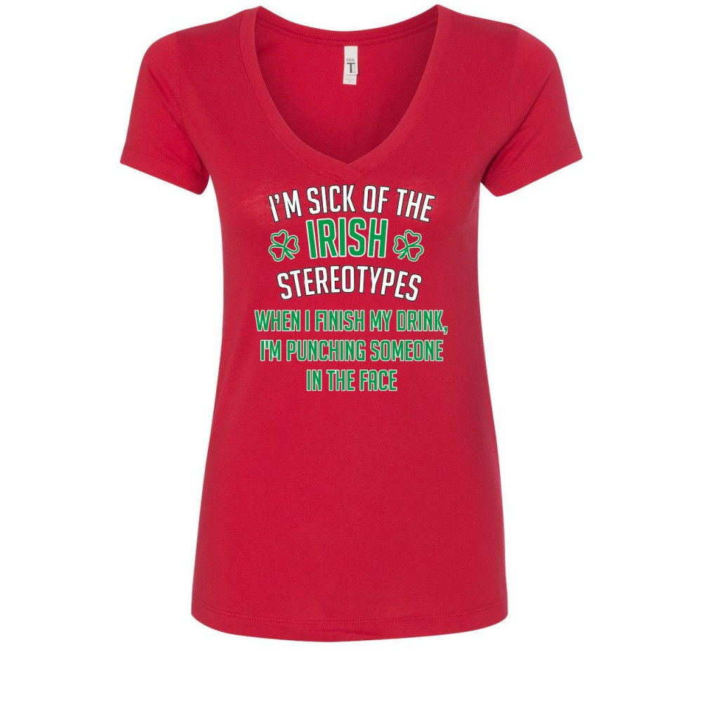 SICK OF THE IRISH STEREOTYPES i'm sick of irish stereotypes women's v-neck t-shirt st. patrick's day beer pub red