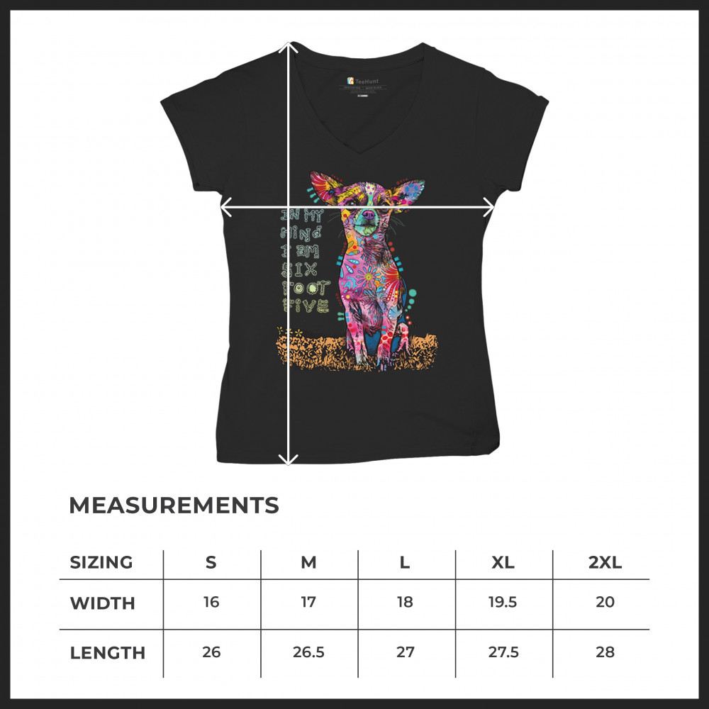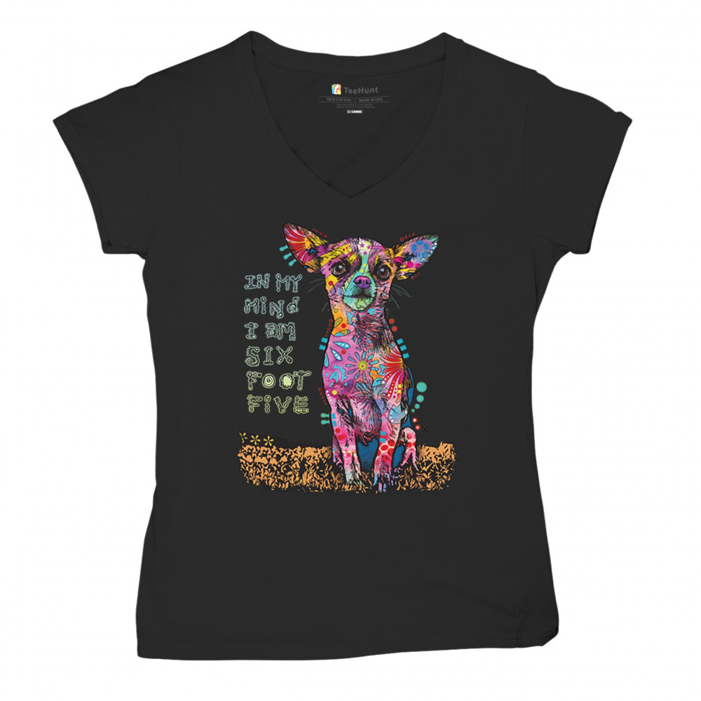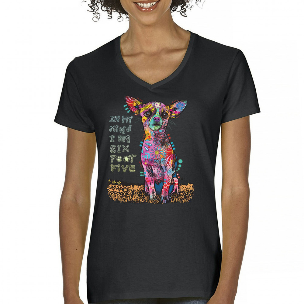 IN MY MIND I'M SIX FOOT FIVE women's v-neck t-shirt dean russo chihuahua tee black