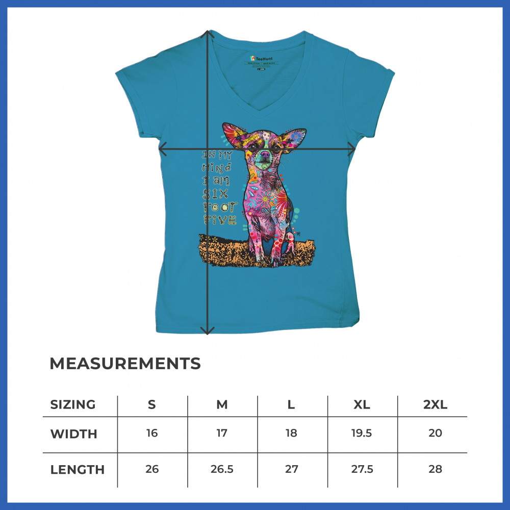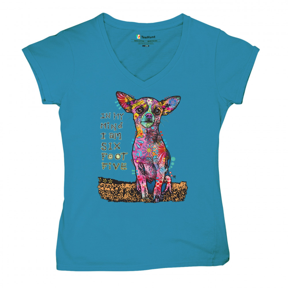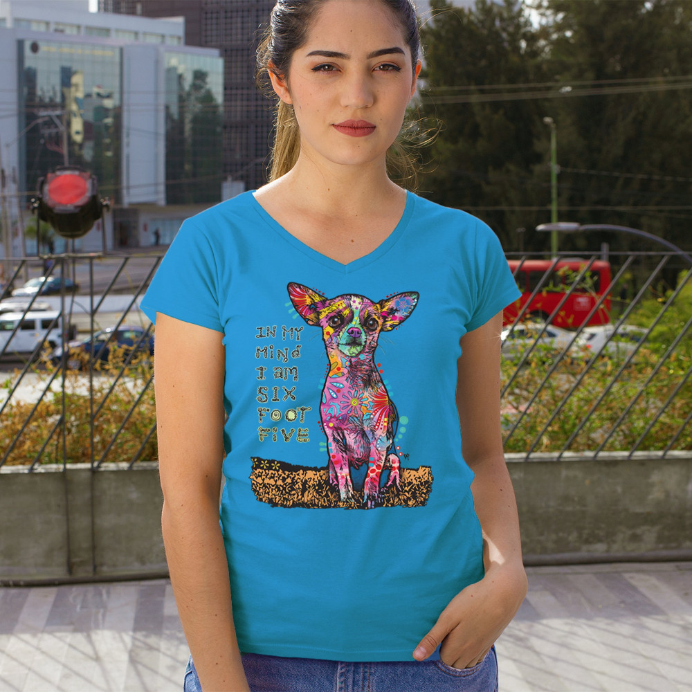 IN MY MIND I'M SIX FOOT FIVE women's v-neck t-shirt dean russo chihuahua tee turquoise