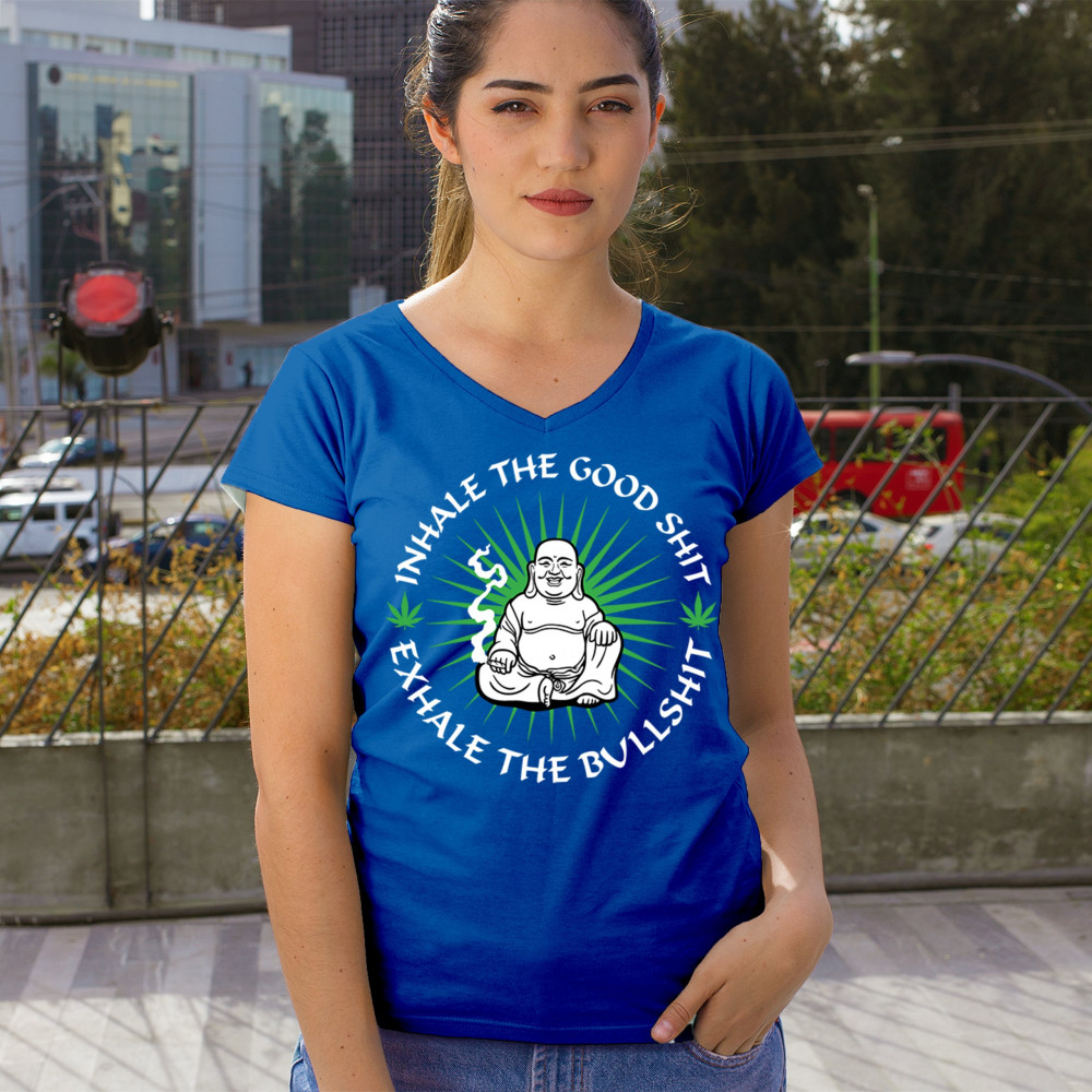 This hilarious and zen-inspired design features a happy Buddha with a joint, surrounded by cannabis leaves. “Inhale the Good Shit, Exhale the Bullshit†delivers chill stoner wisdom with a wink. Ideal for mindful marijuana lovers, 420 fans, or spiritual rebels with a sense of humor and a love for weed.