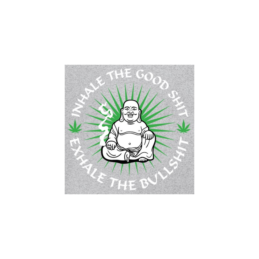Stoner Buddha design with weed leaves and funny zen slogan—perfect for chill 420 lovers who inhale peace and exhale the BS.