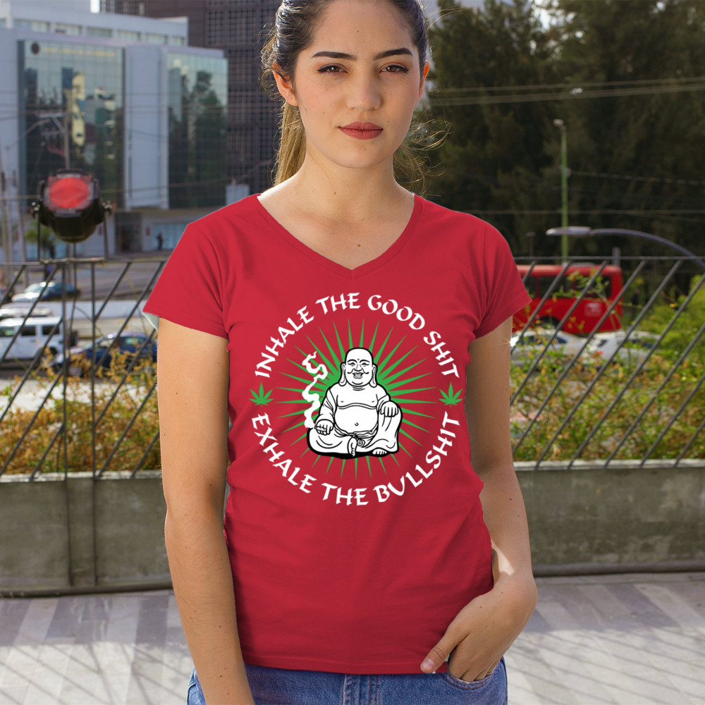 This hilarious and zen-inspired design features a happy Buddha with a joint, surrounded by cannabis leaves. “Inhale the Good Shit, Exhale the Bullshit†delivers chill stoner wisdom with a wink. Ideal for mindful marijuana lovers, 420 fans, or spiritual rebels with a sense of humor and a love for weed.