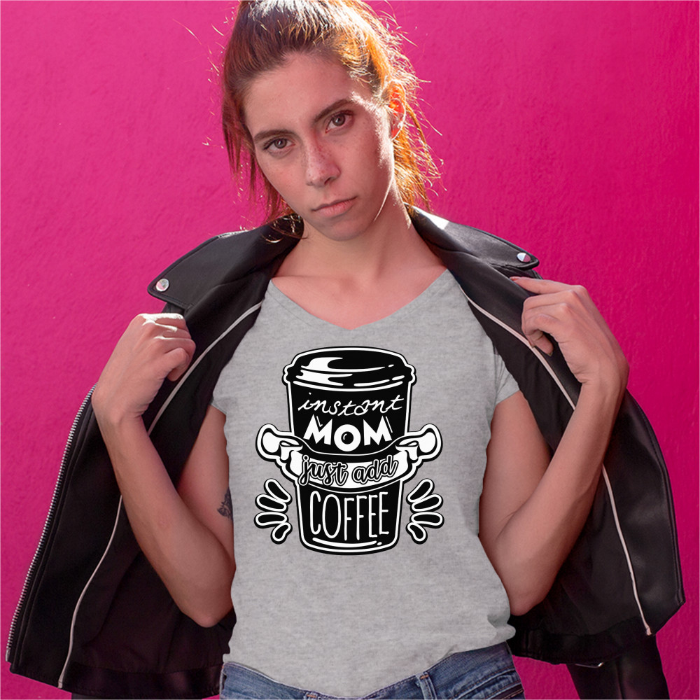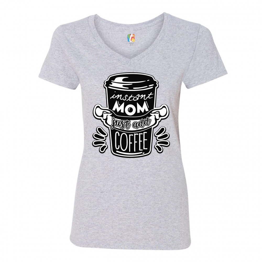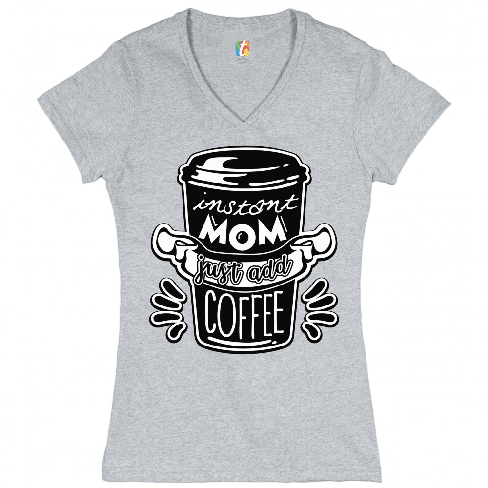 INSTANT MOM JUST ADD COFFEE women's v-neck t-shirt mother's day mom life tee gray