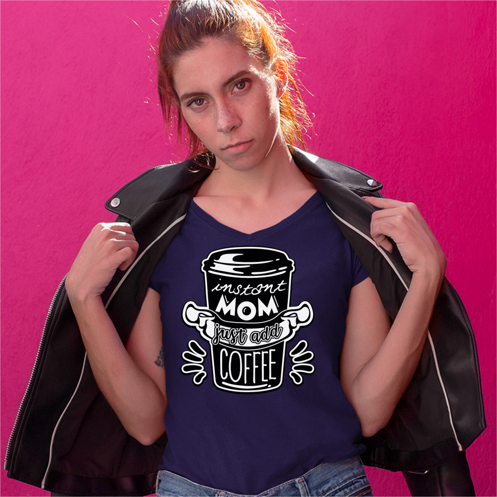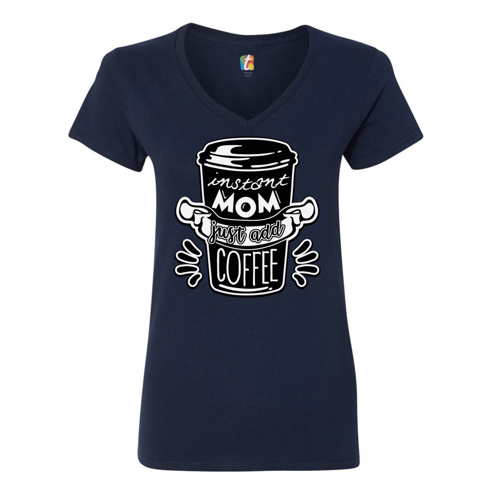 INSTANT MOM JUST ADD COFFEE women's v-neck t-shirt mother's day mom life tee navy blue