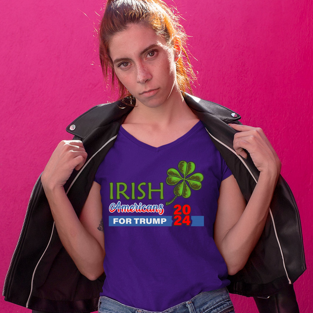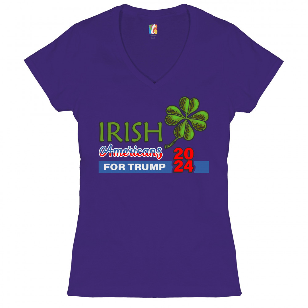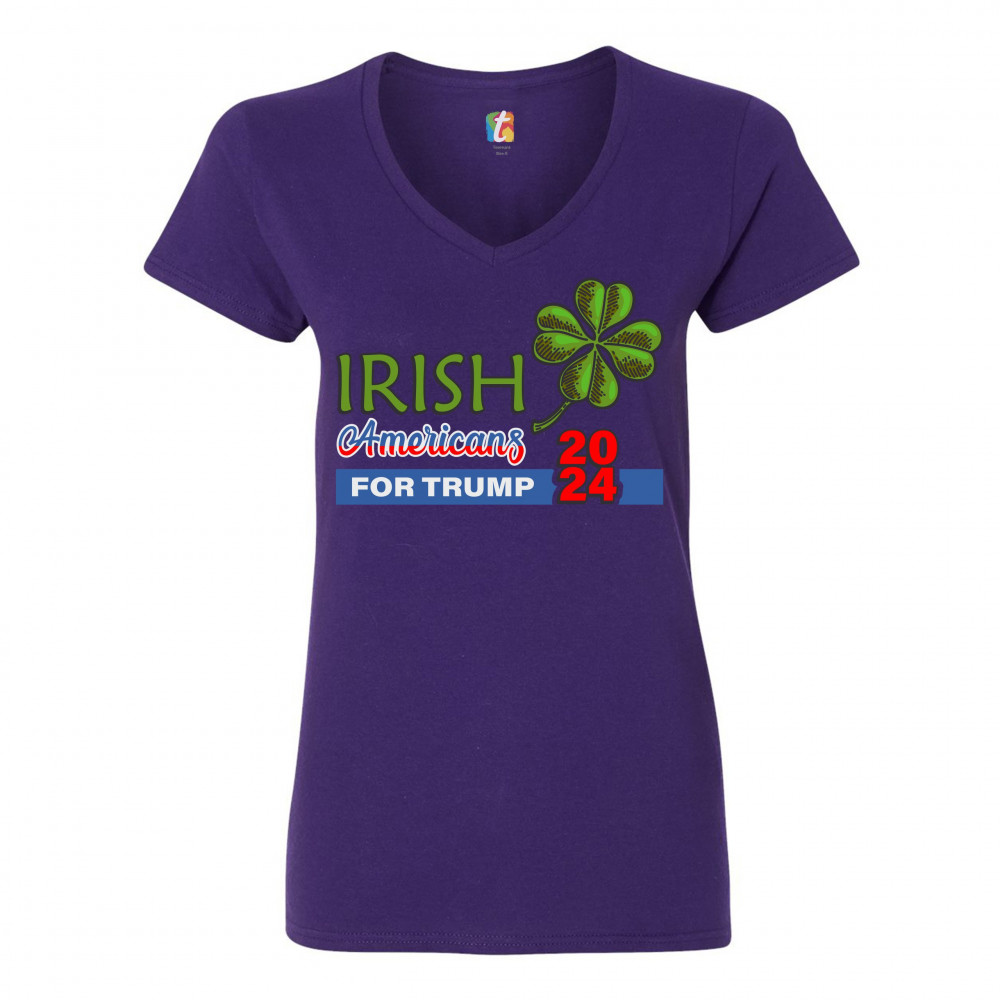 IRISH AMERICANS FOR TRUMP women's v-neck t-shirt donald trump 2024 clover tee purple