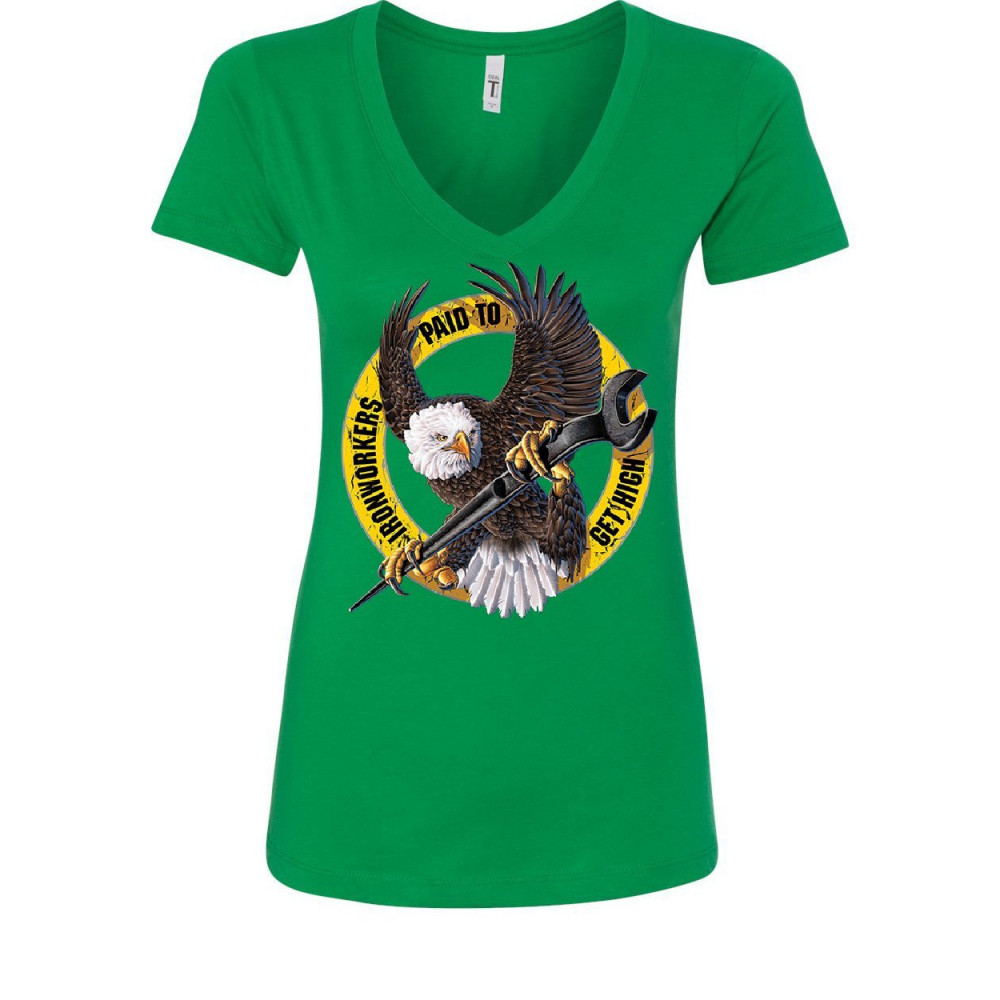 IRONWORKERS PAID TO GET HIGH women's v-neck t-shirt construction workers union green
