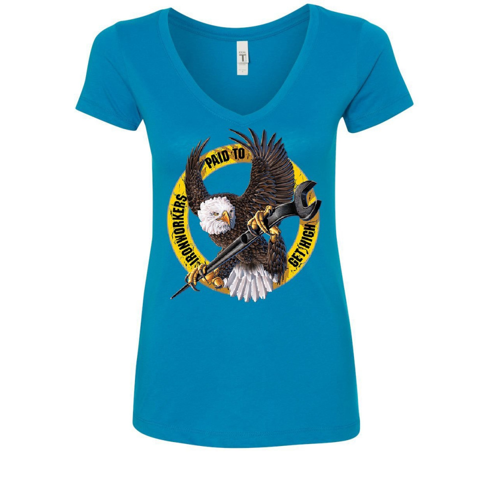 IRONWORKERS PAID TO GET HIGH women's v-neck t-shirt construction workers union turquoise